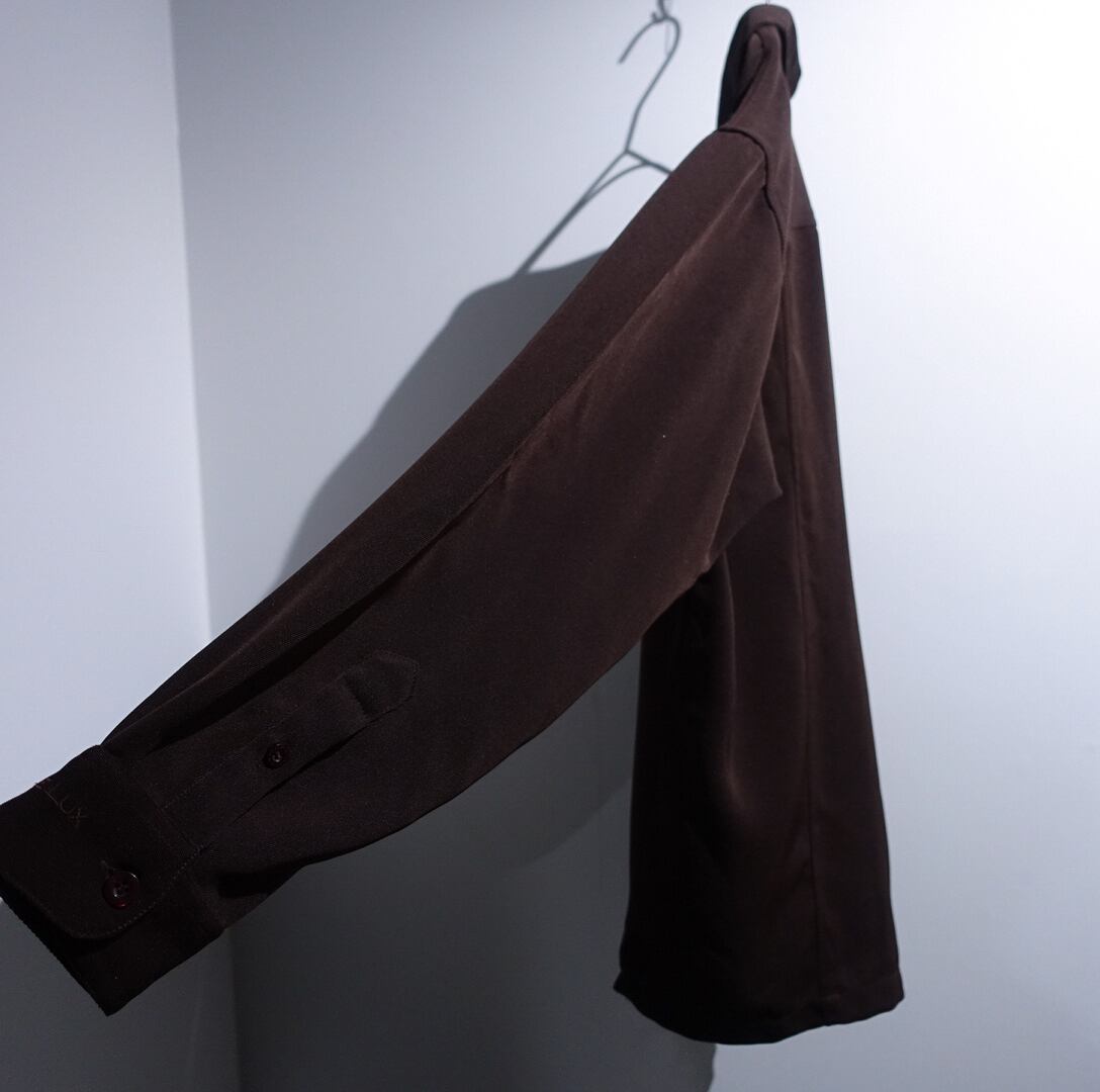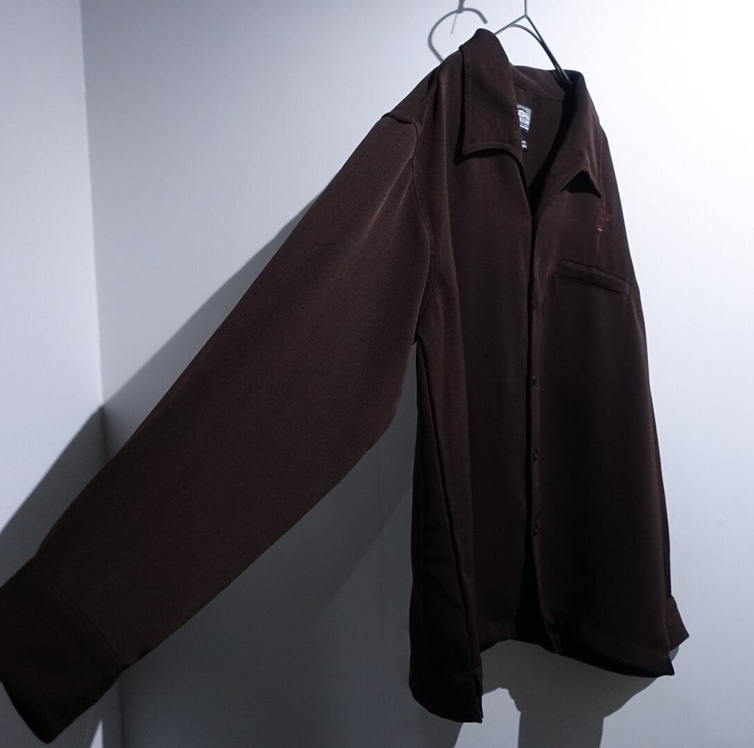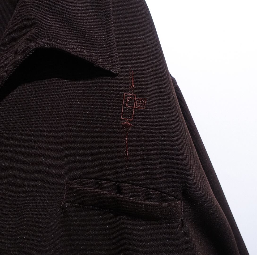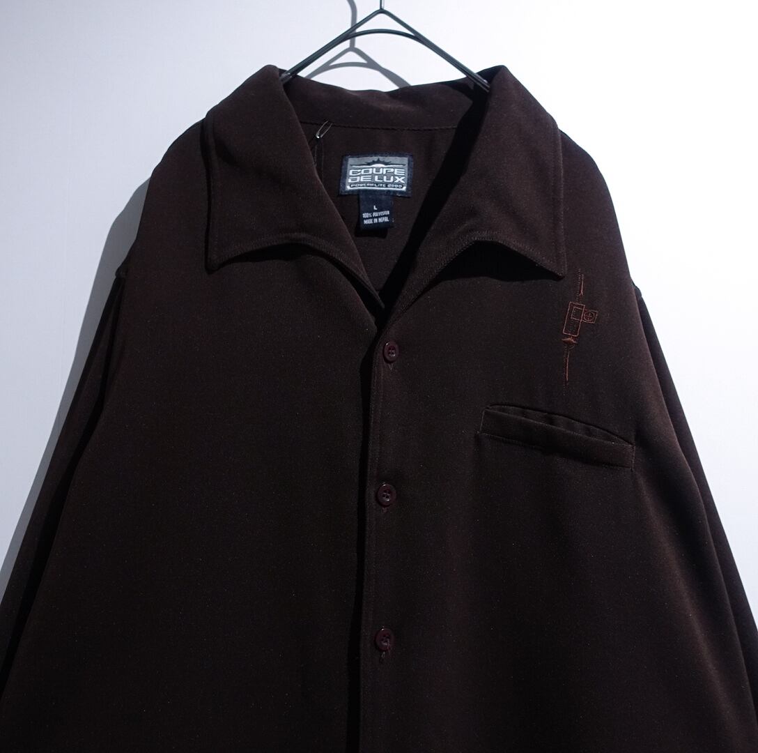 "COUPE DELUX" Brown Geometric Embroidered Design Open Collar Poly Shirt