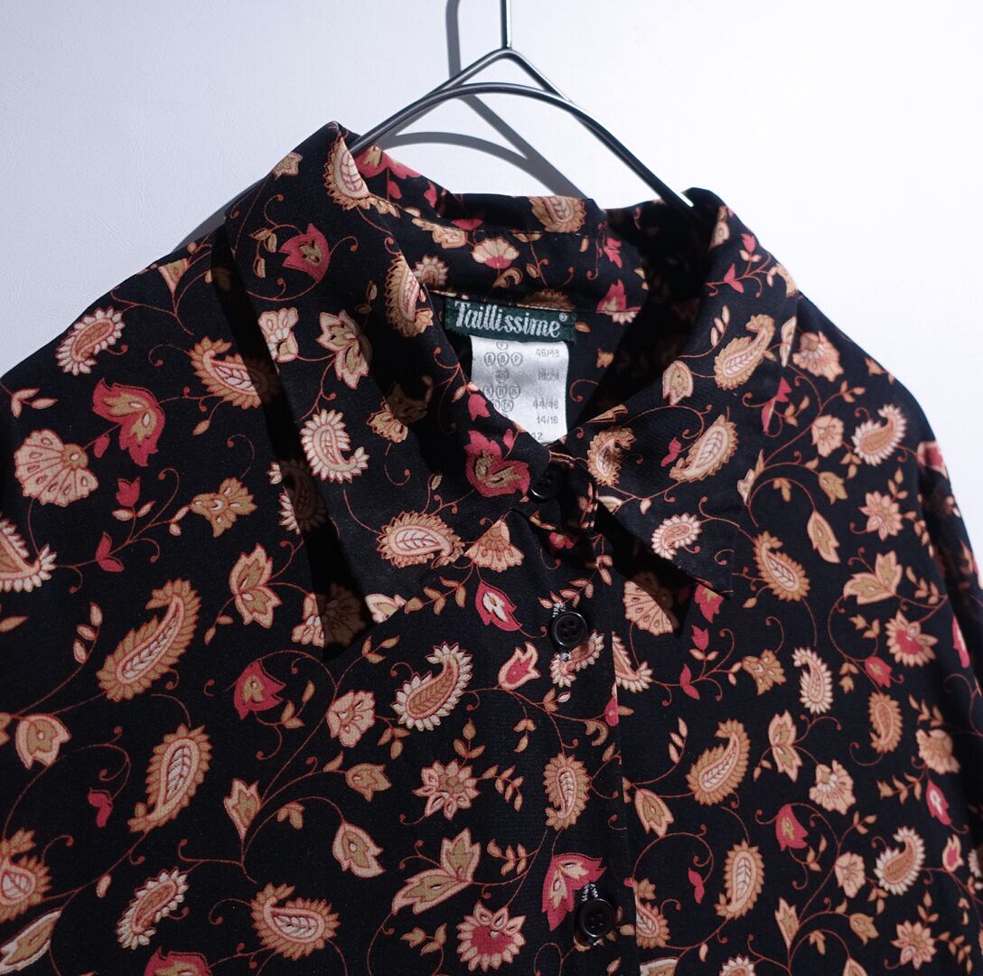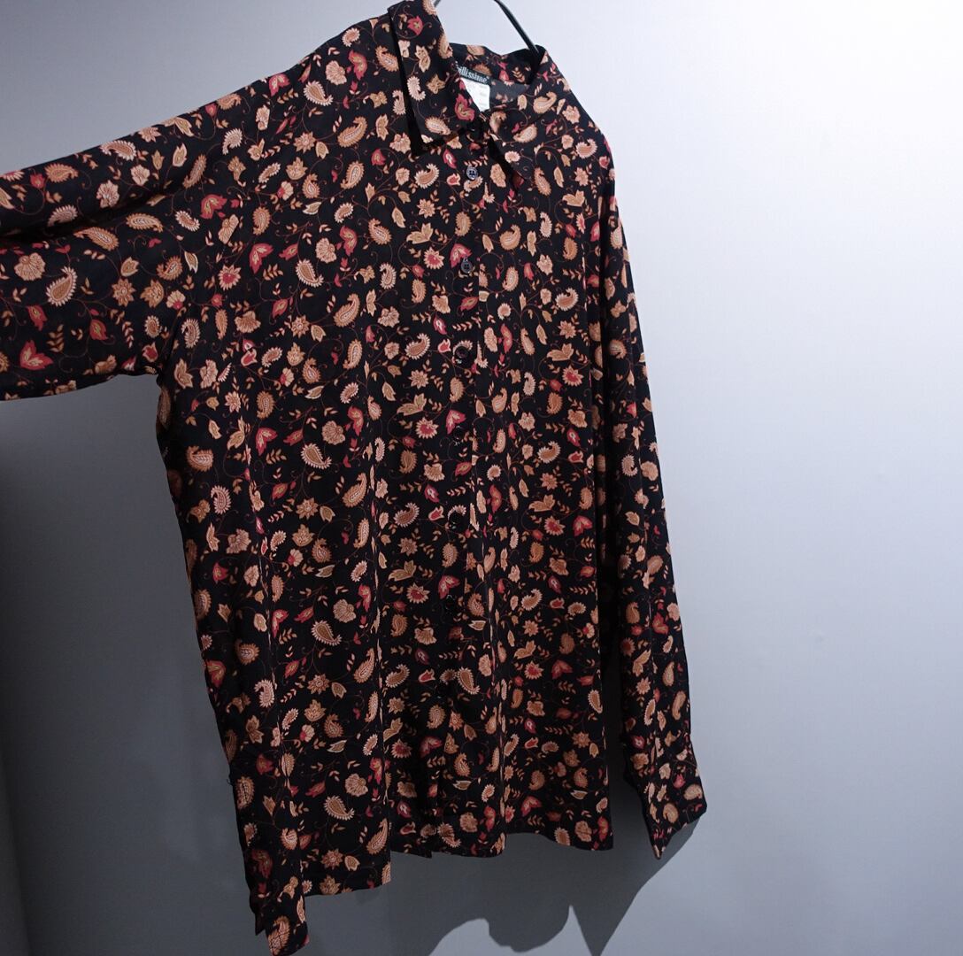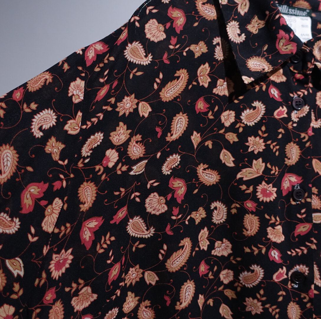 EURO Black Paisley & Botanical Pattern Design Sheer Shirt