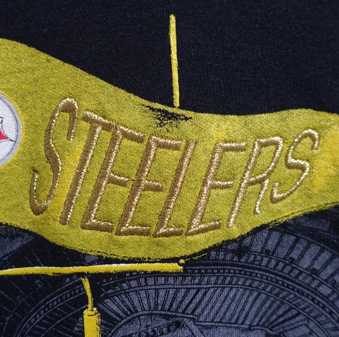 90s “NUTMEG” Black STEELERS Embroidered & Printed Design Sweat