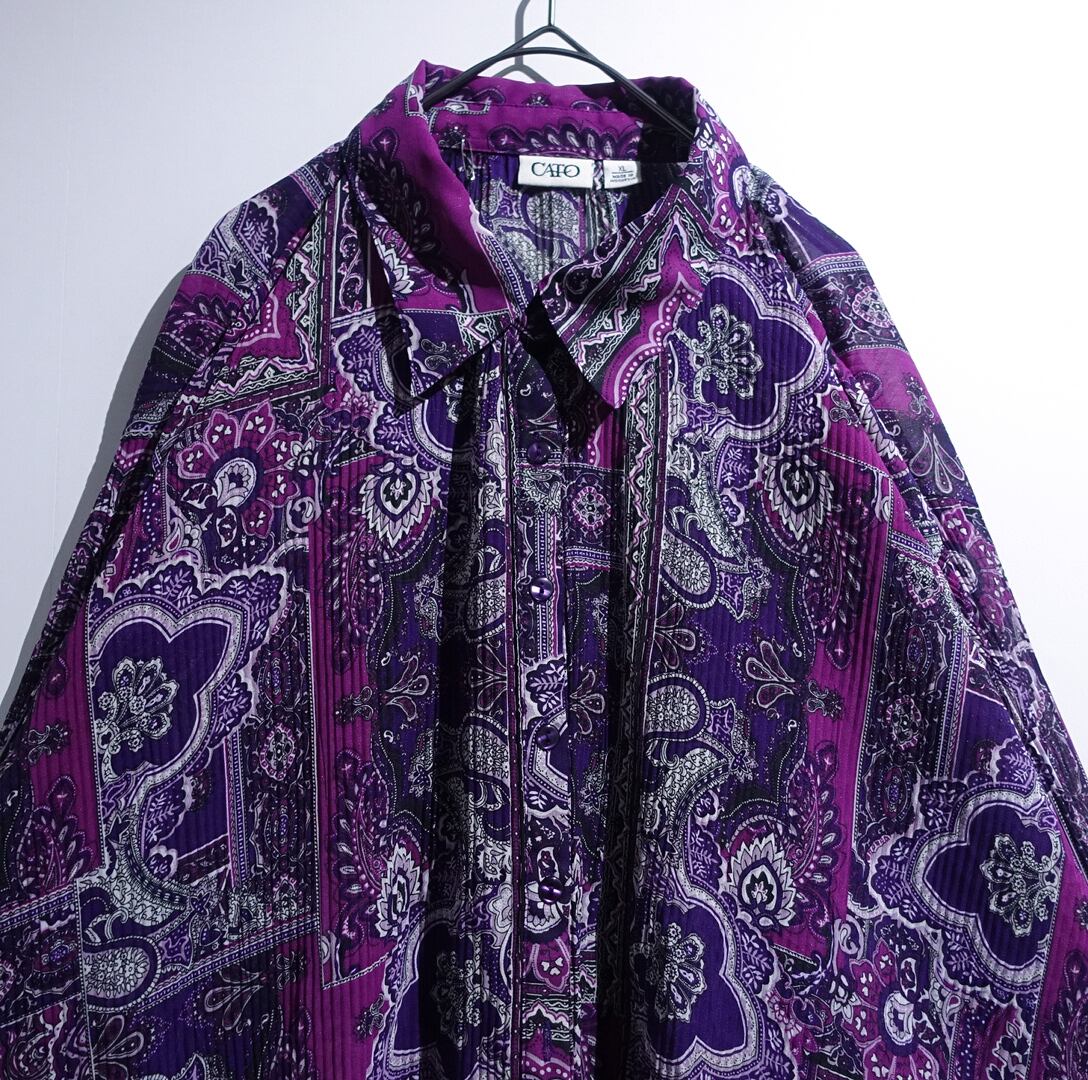 Purple Paisley Pattern Design Pleated Shirt