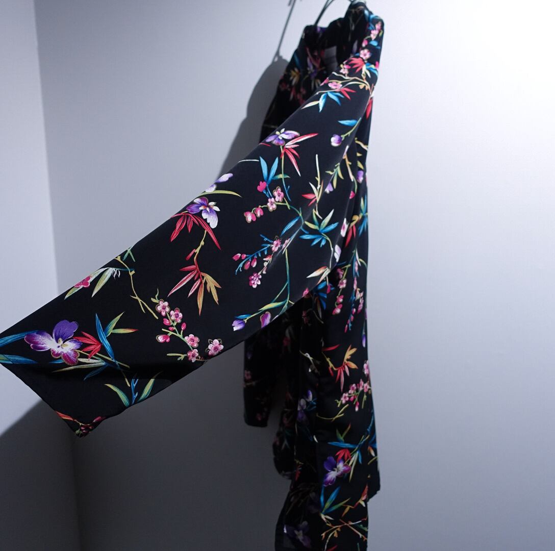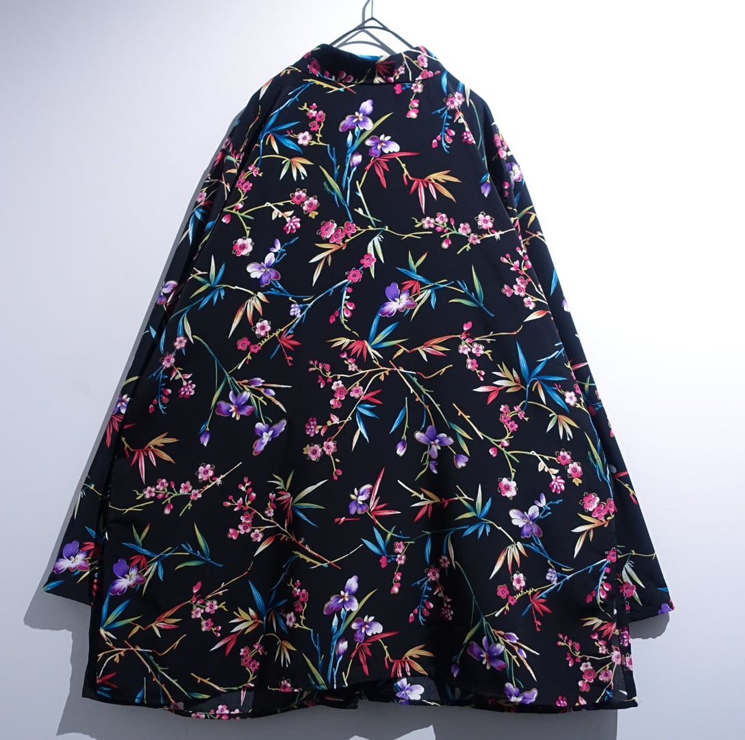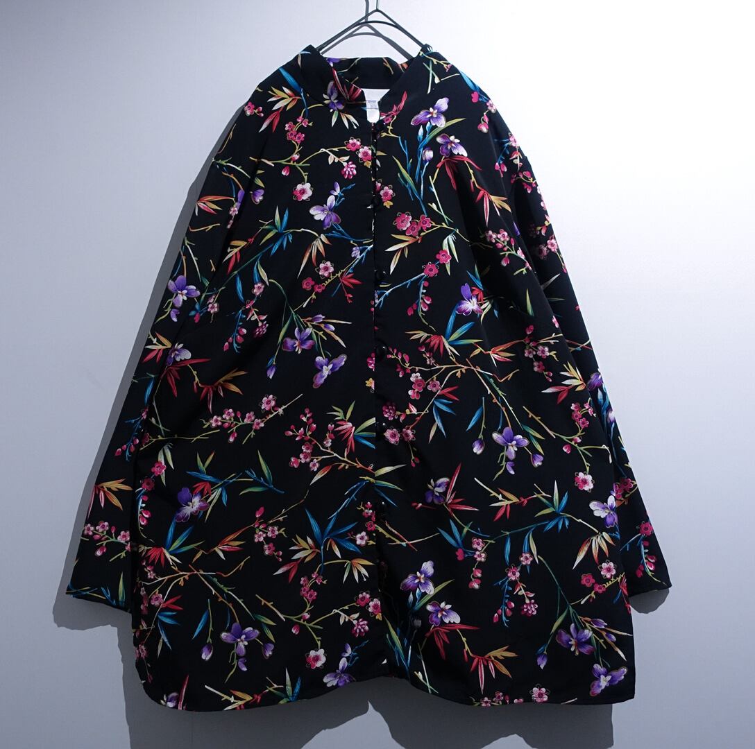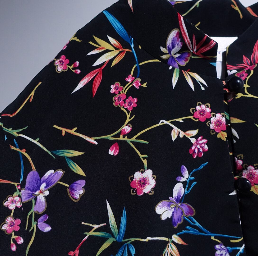 Black Various Flower Motif Design China Shirt