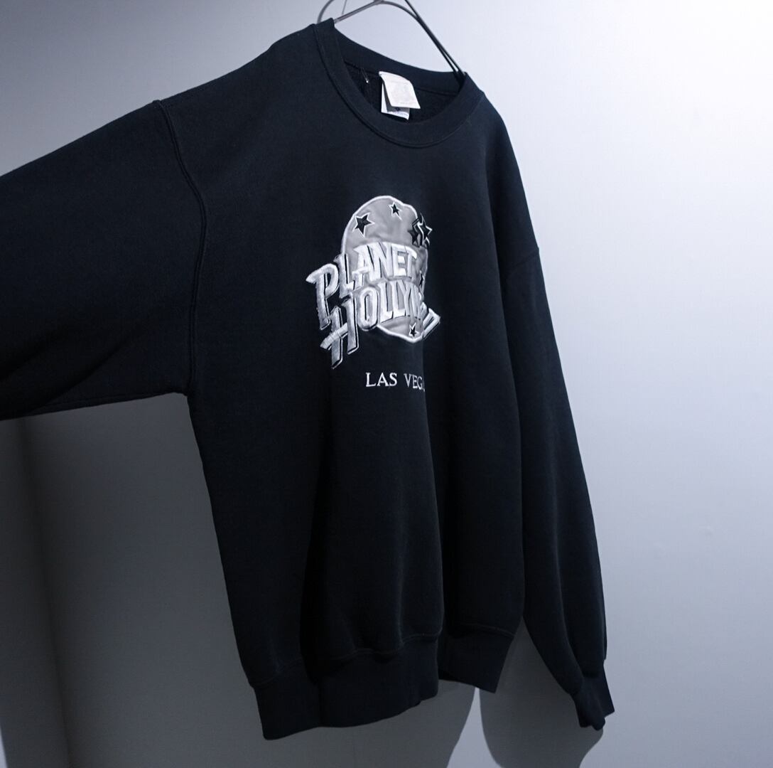 "PLANET HOLLYWOOD" Black Logo Embroidered Design Sweat