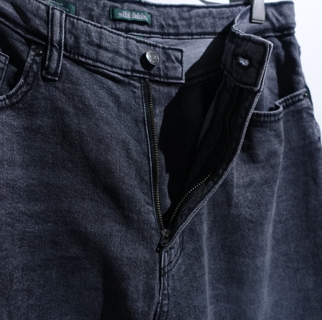 Black Faded Wide Straight Denim Pants