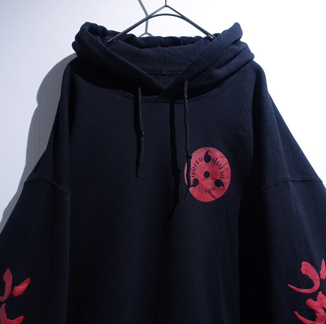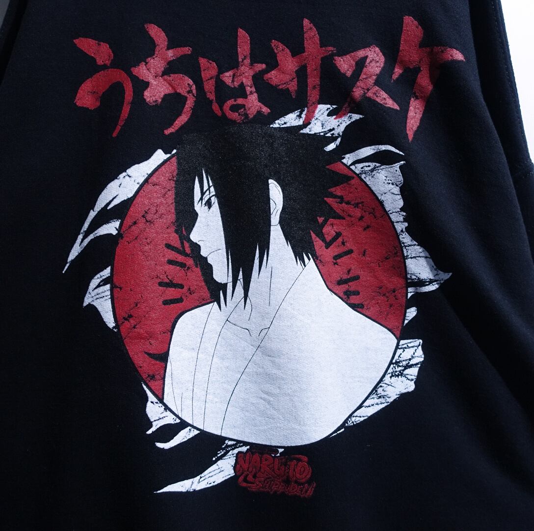 00s "NARUTO" Black Uchiha Sasuke Full Print Design Parka