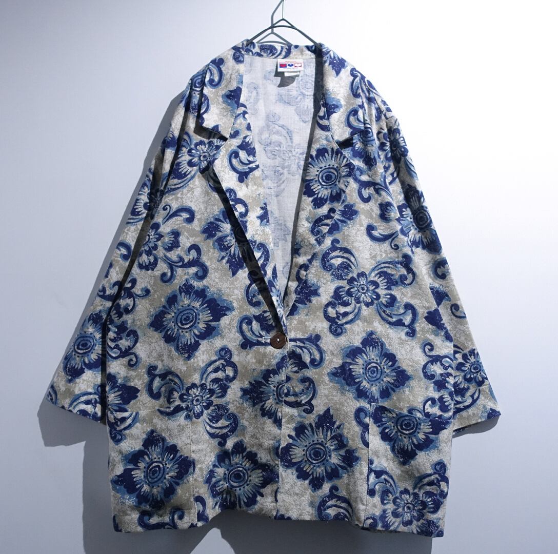 Multicolor Flower Motif Design Linen Easy Tailored Jacket