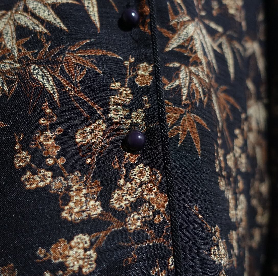 Black Botanical Pattern Chinese Design Shirt