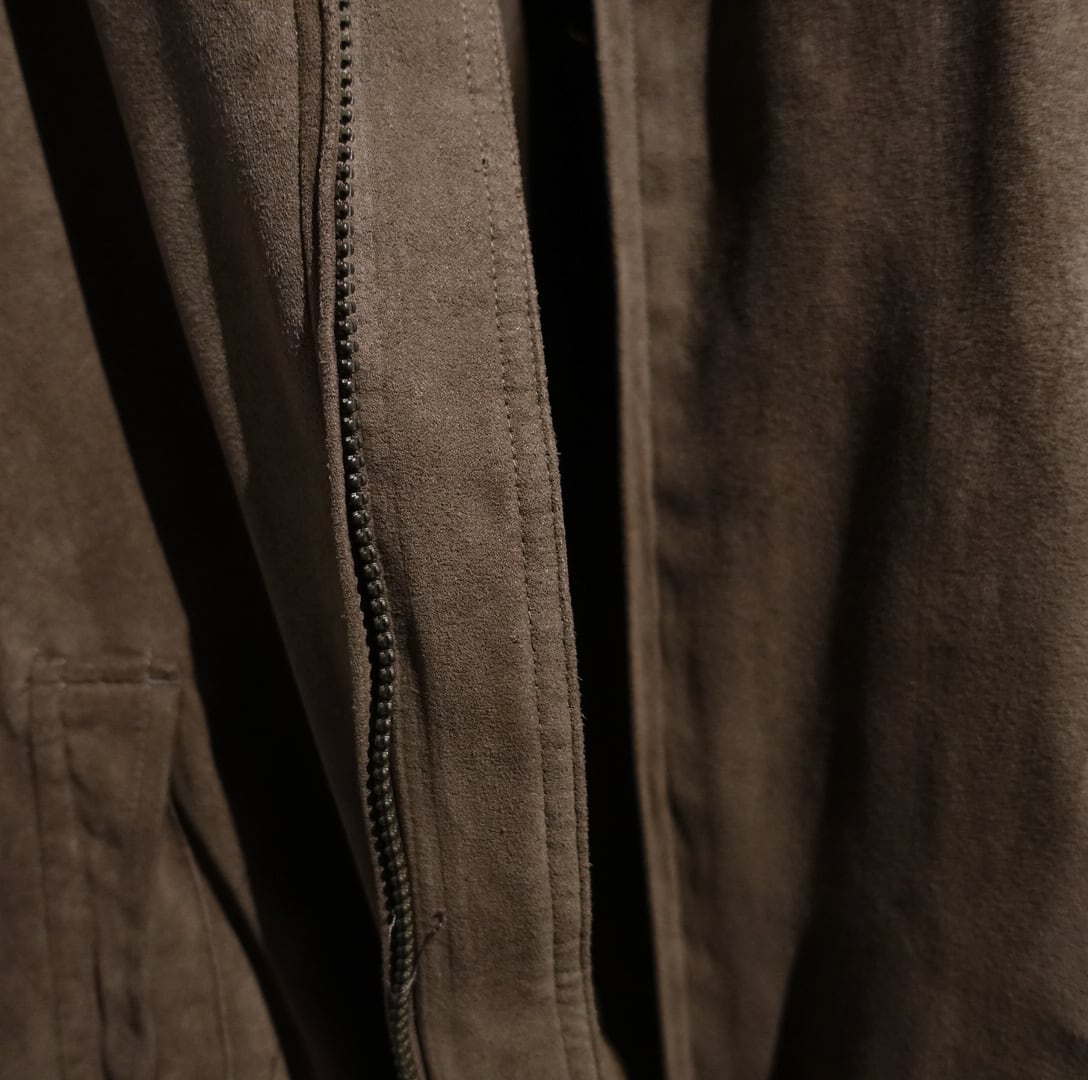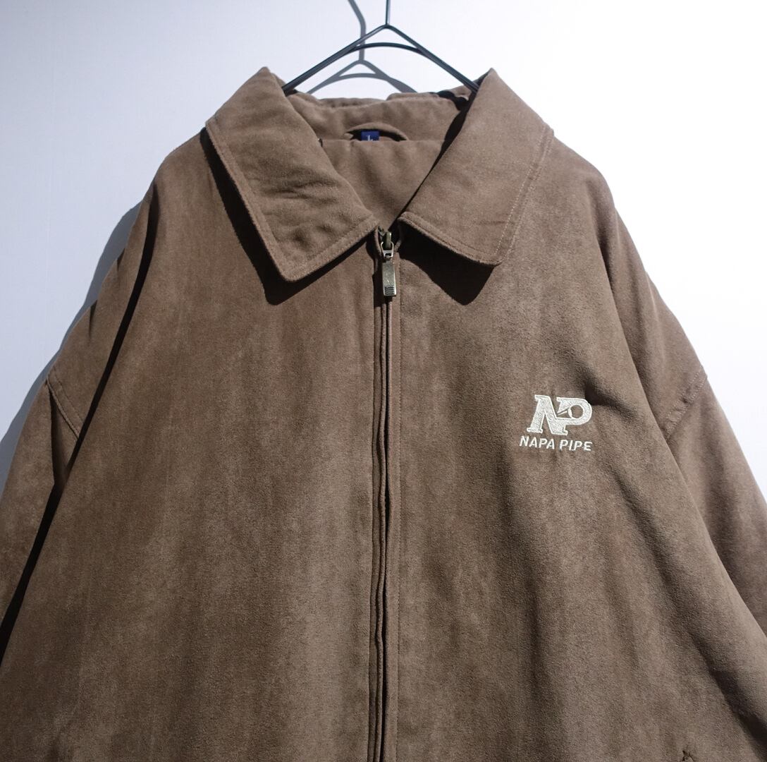 Beige Logo Embroidered Design Faux suede Swing Top Blouson