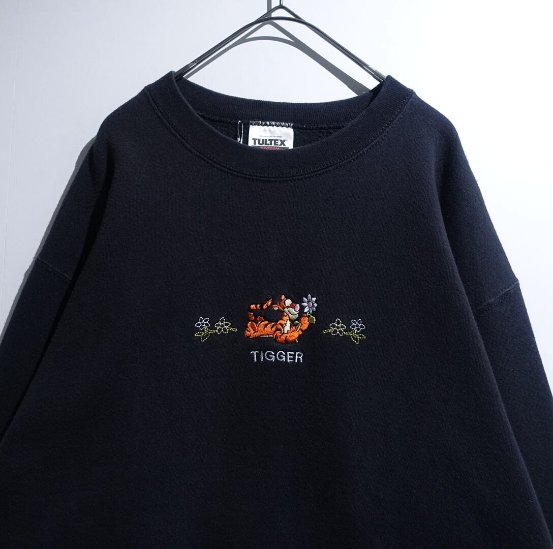 90s "TULTEX" Black Tigger Character Embroidered Design Sweat