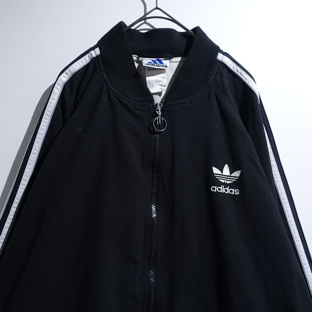 90s "adidas" Black Trefoil Logo & 3-Stripes Zip Blouson