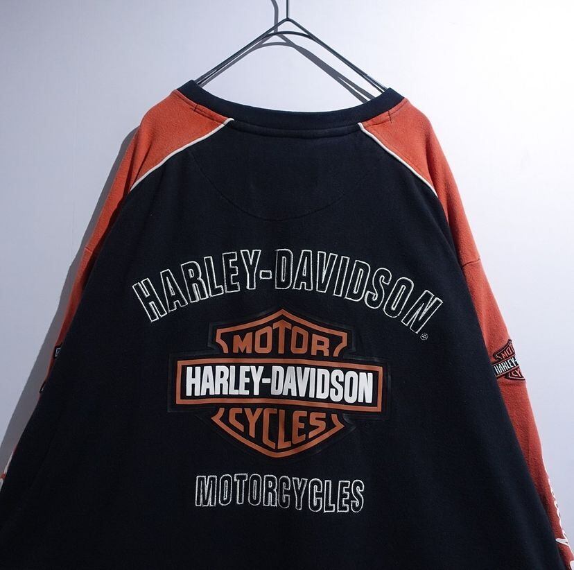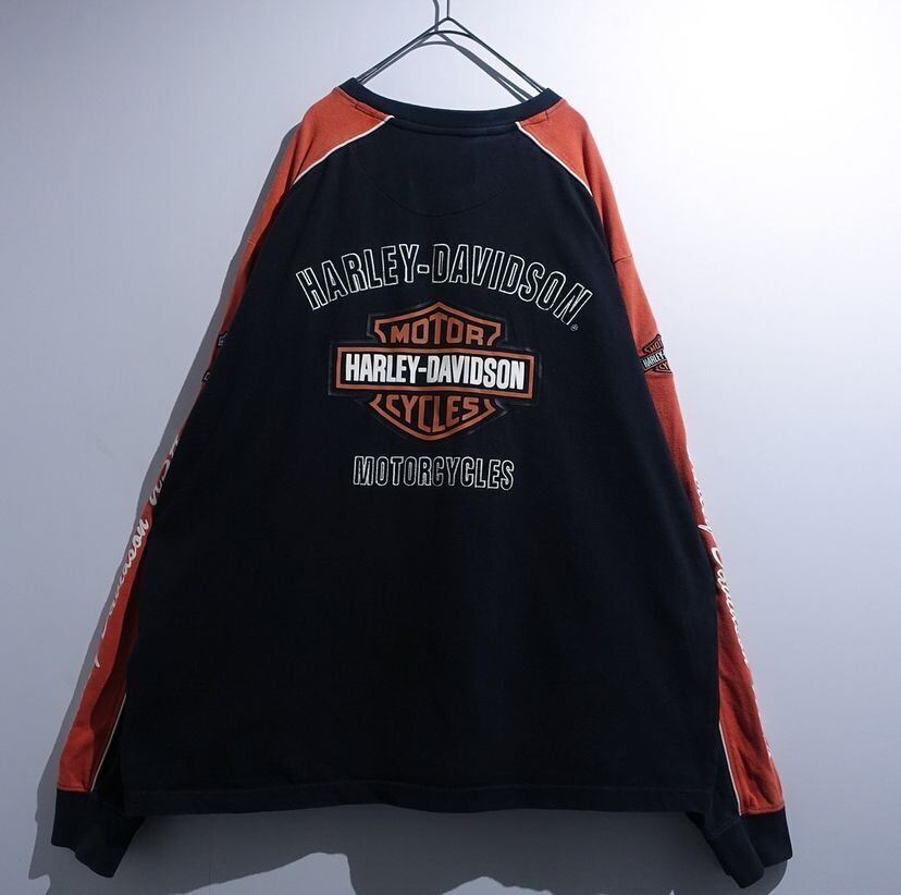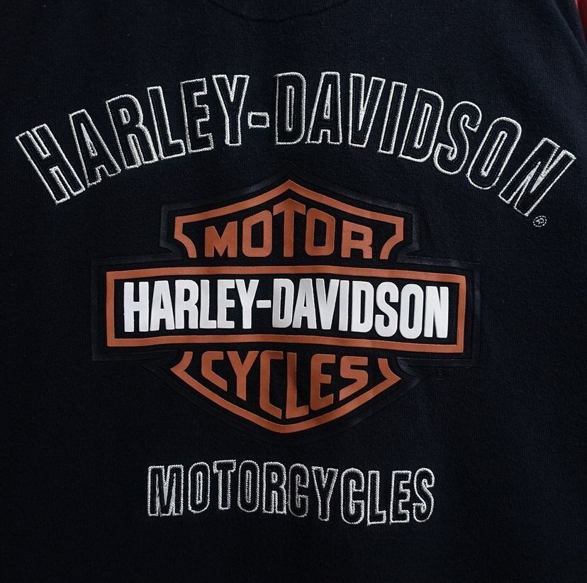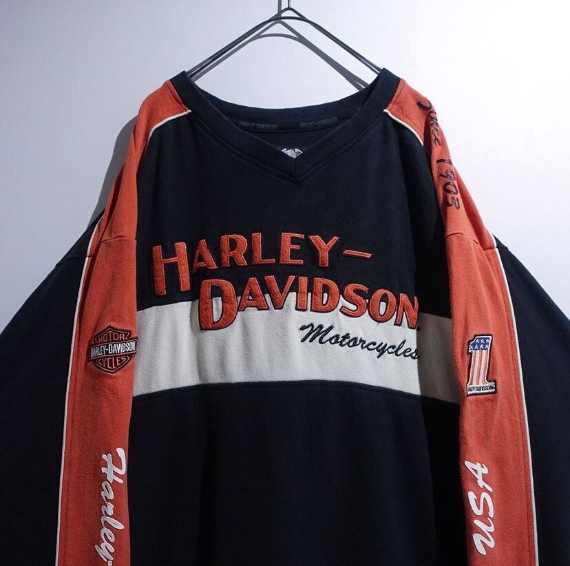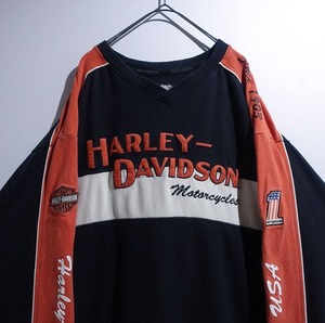 “Harley Davidson” Black Full Print Design V-neck Long T-Shirt