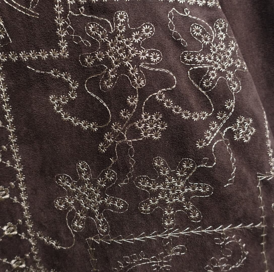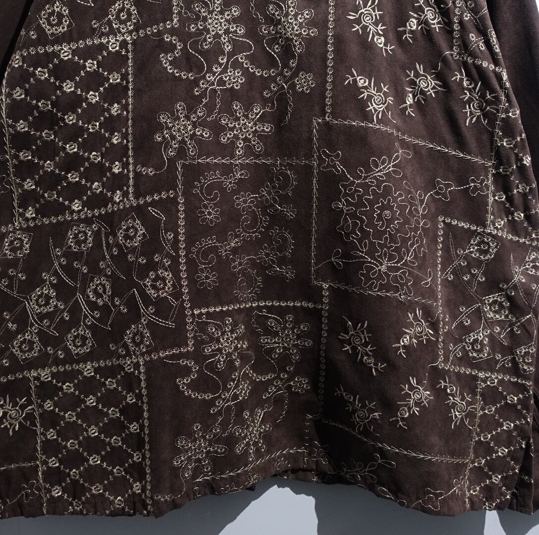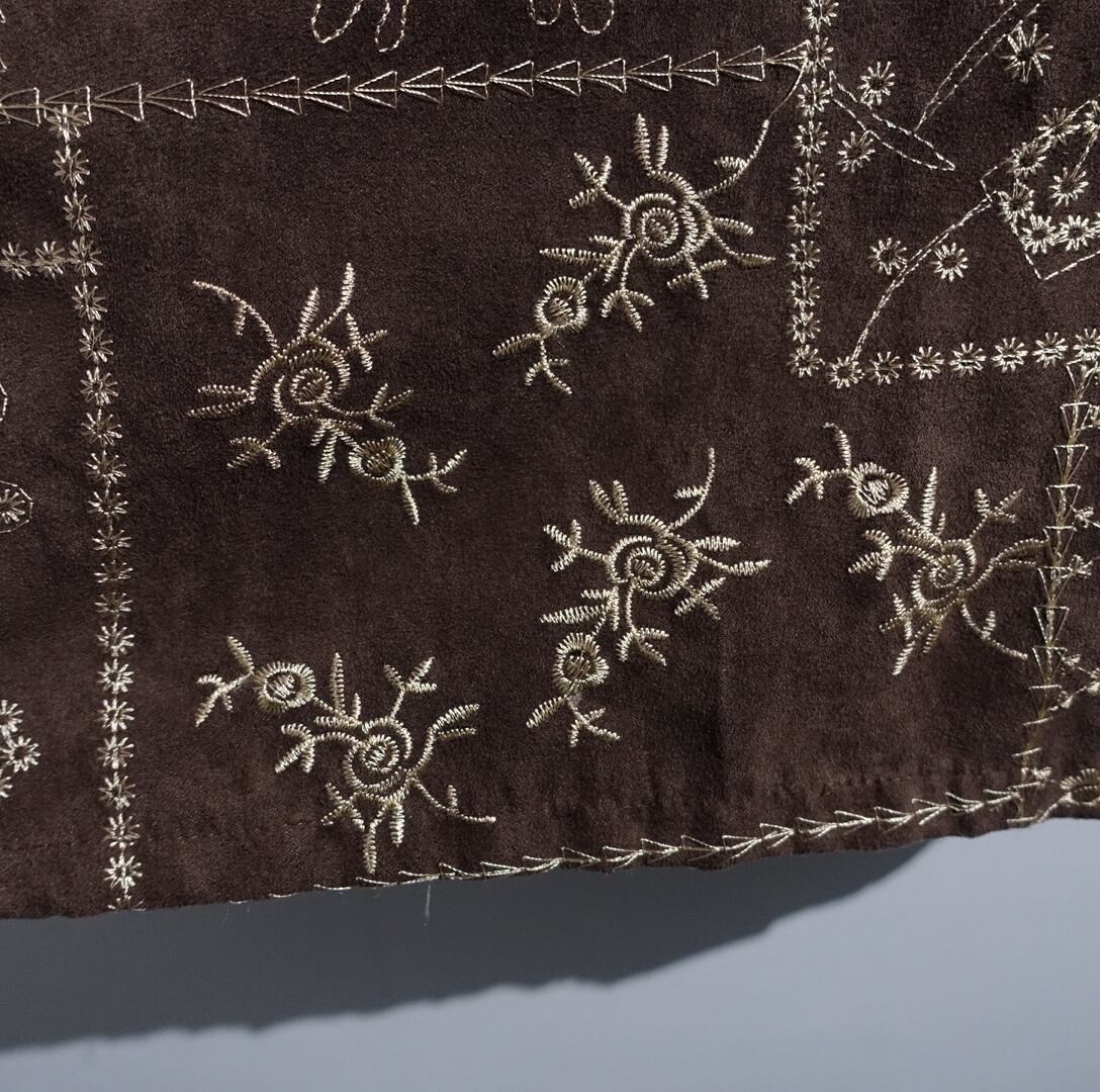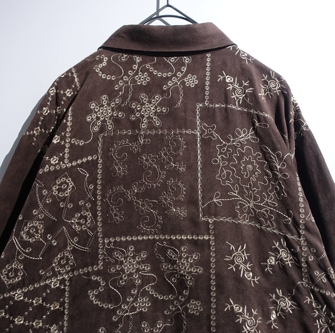Brown Various Motifs Embroidery Design Faux Suede Shirt