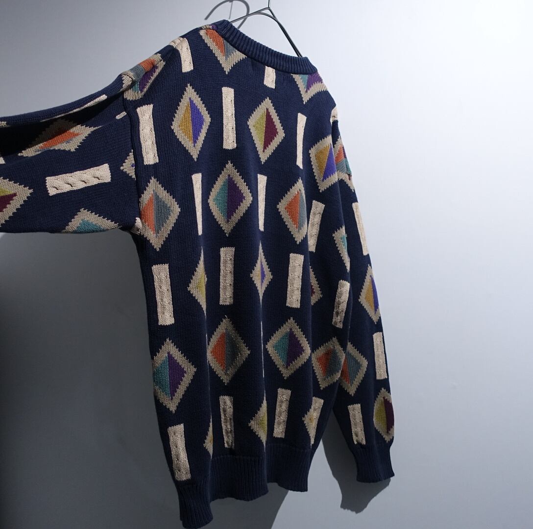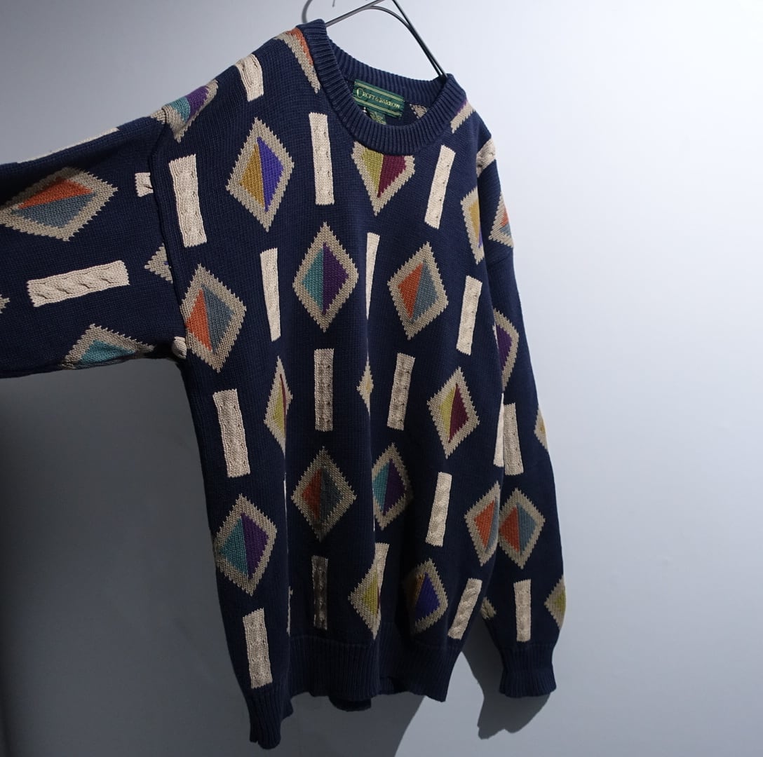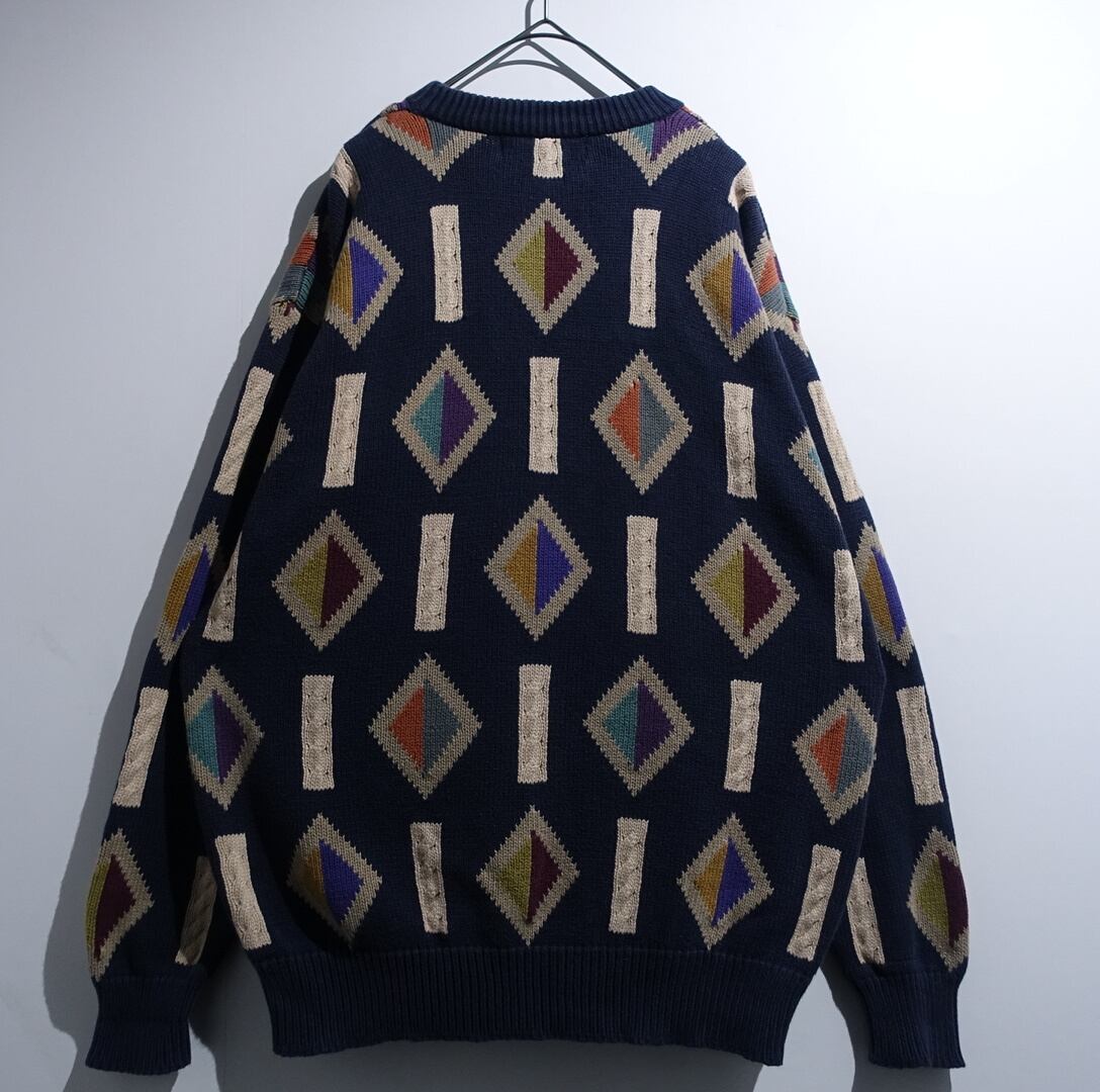 90s "CROFT & BARROW" Multicolor Diamond Motif Design Cotton Knit