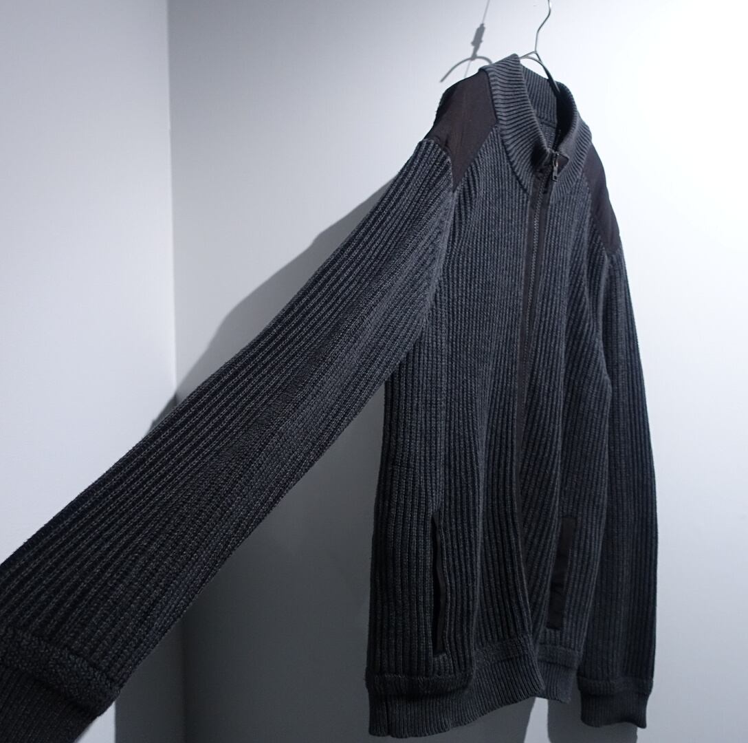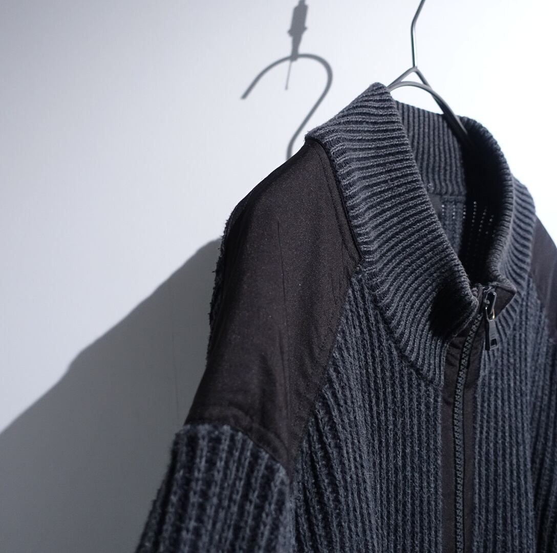 00s "Calvin Klein" Charcoal Gray Nylon Switching Design Cotton Driver's Knit