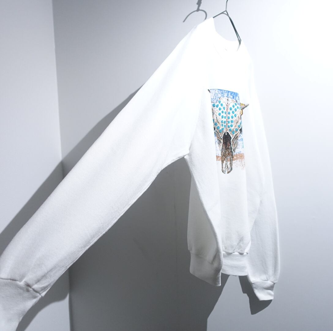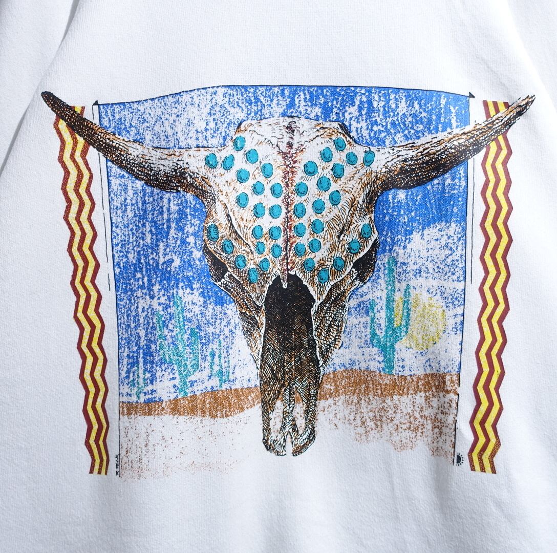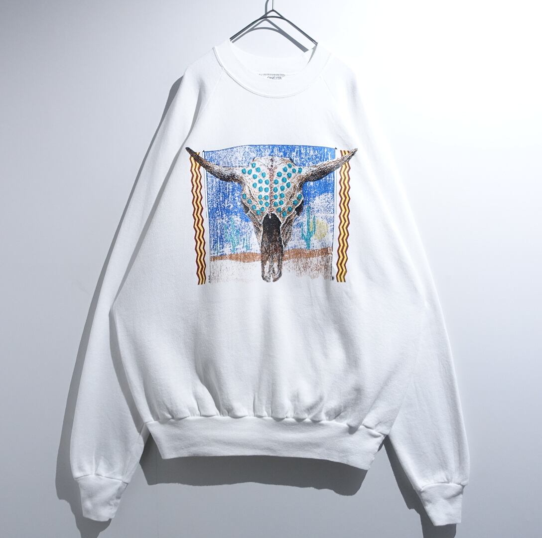 90s “ONITA” White Bison Skull Motif Print Design Sweat