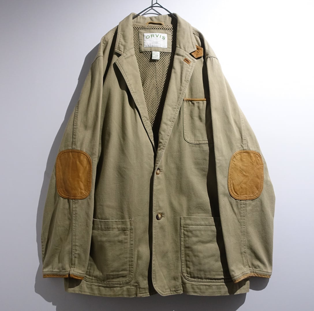 “ORVIS” Beige Leather Elbow Patch & Chin Strap Tailored Jacket