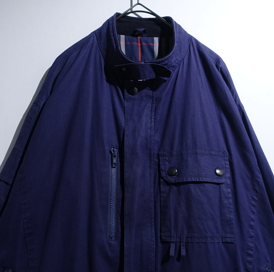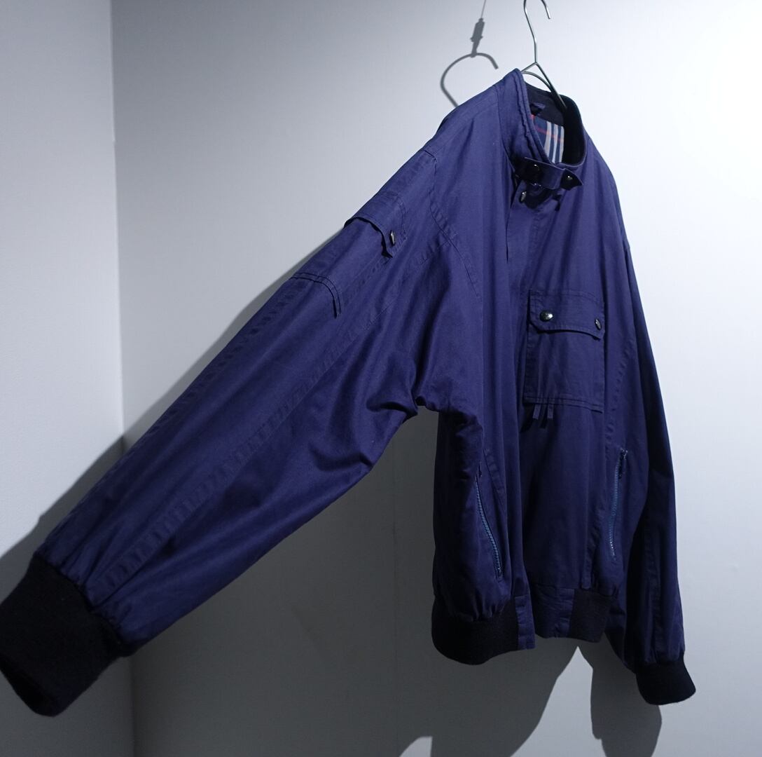90s "Burberry" Navy Multi-Pocket & Nova Check Design Zip Blouson