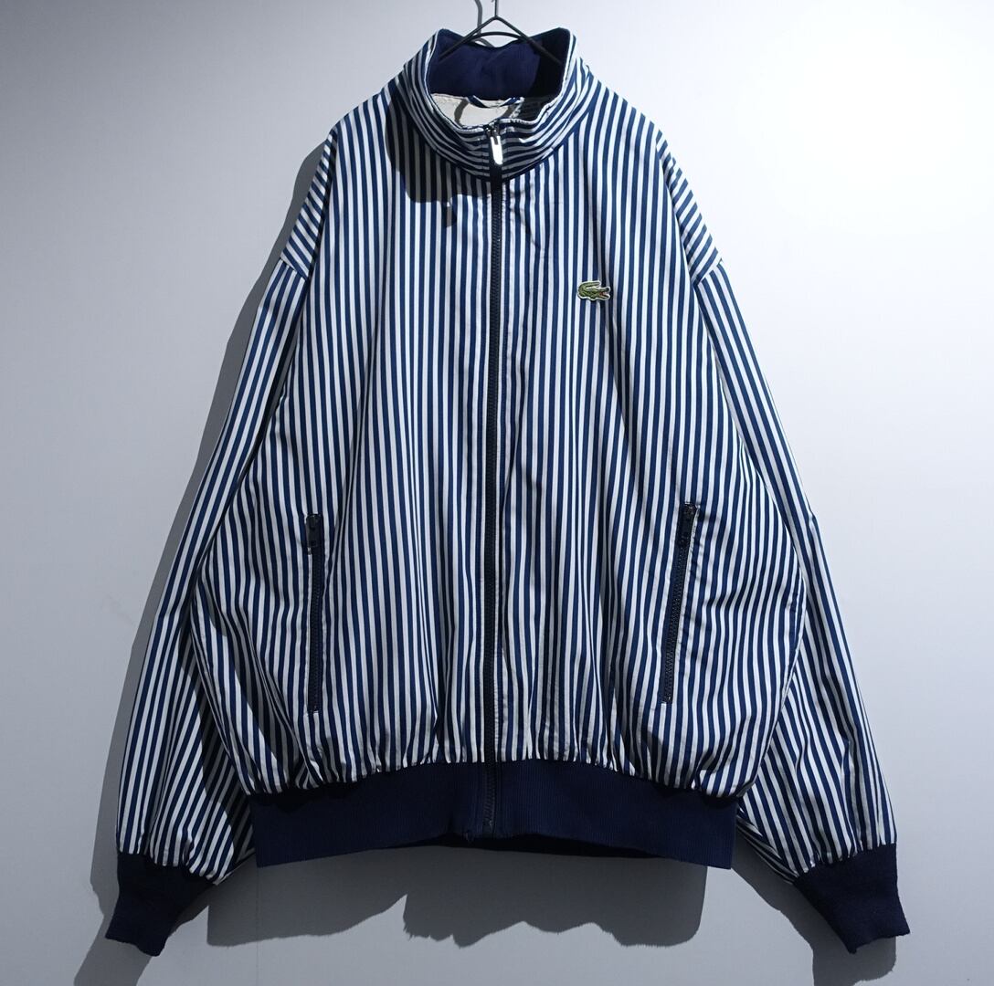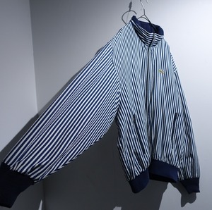80s “French Lacoste” White & Blue Stripe Design Zip Blouson