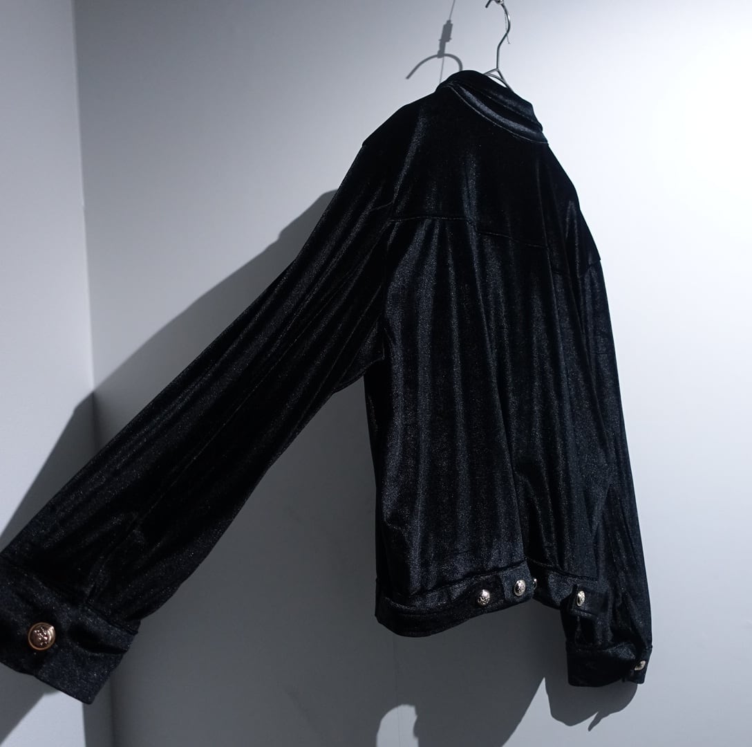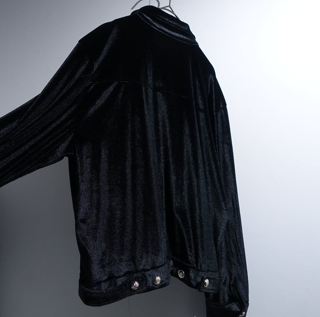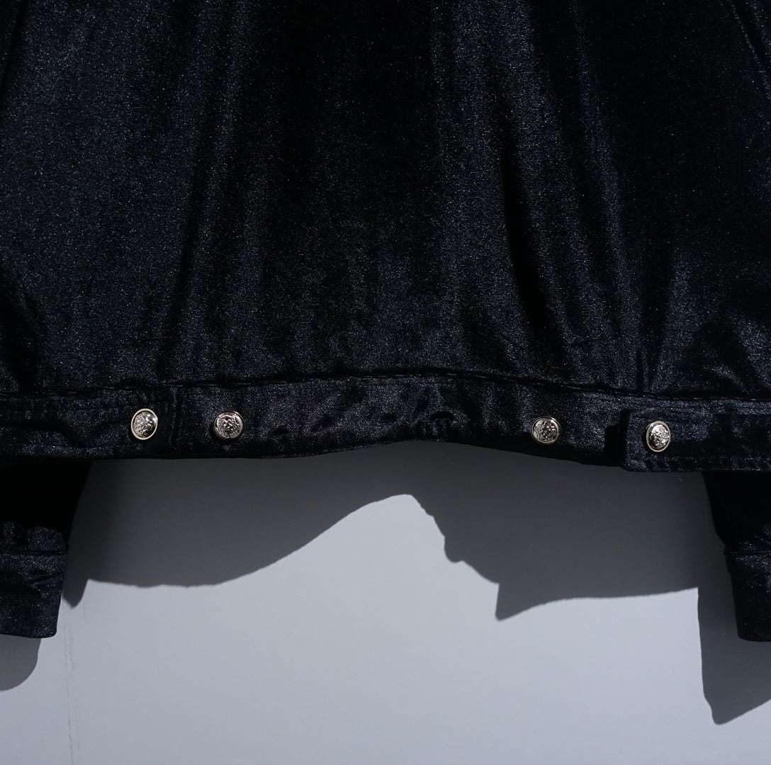 Black Emblem Silver Button Design Short Length Velour Jacket