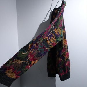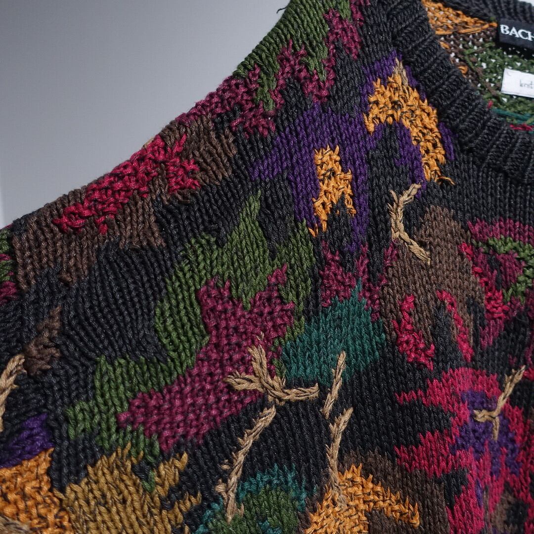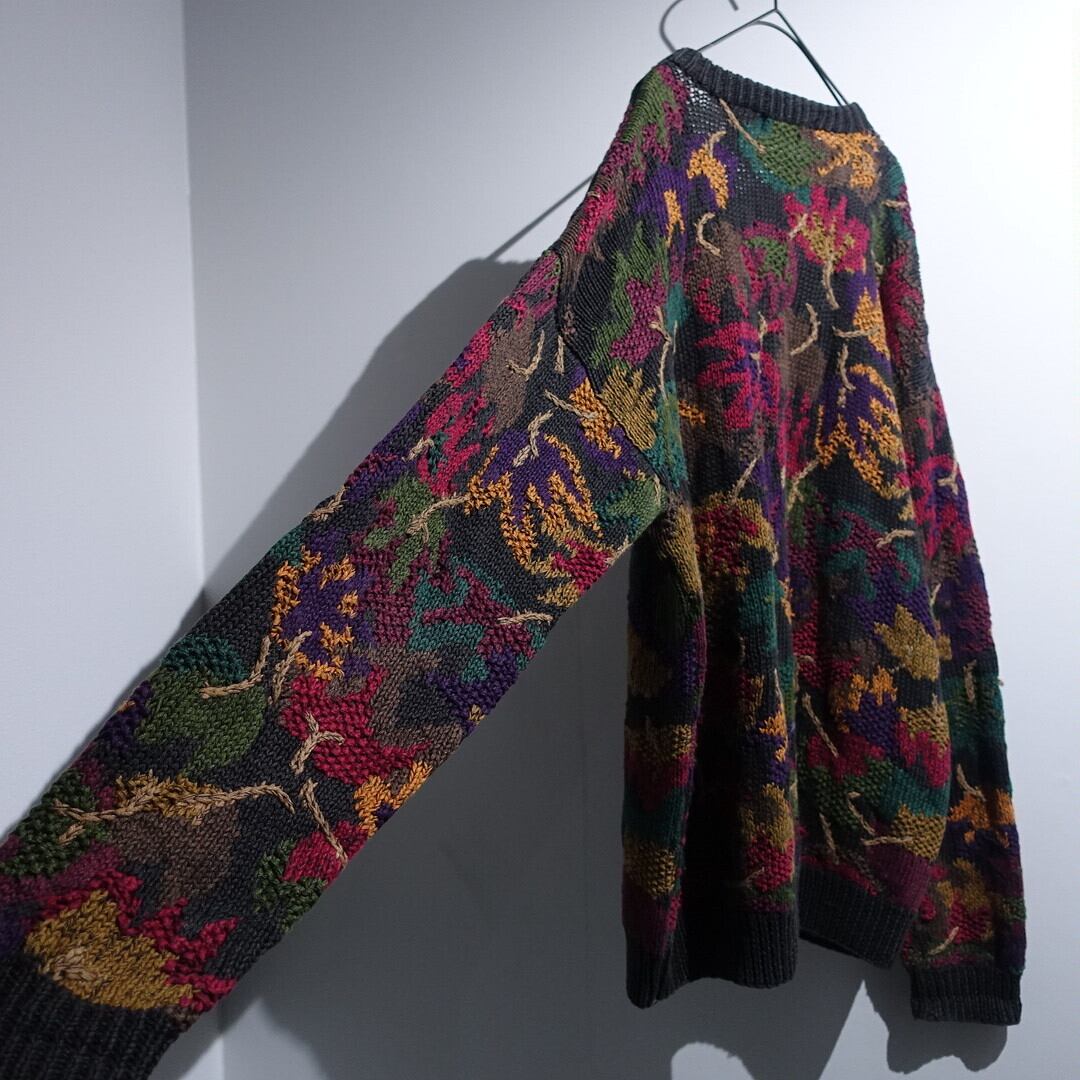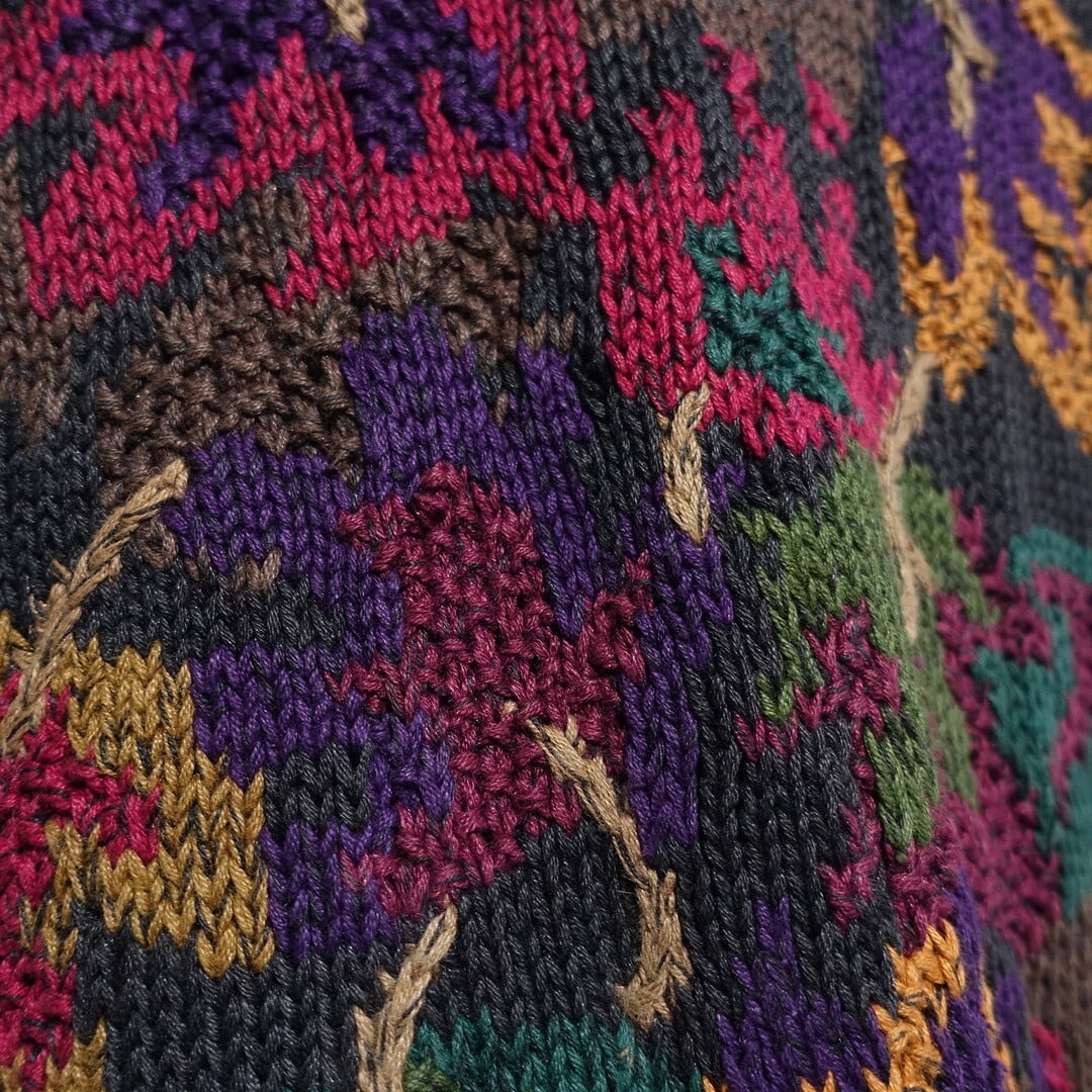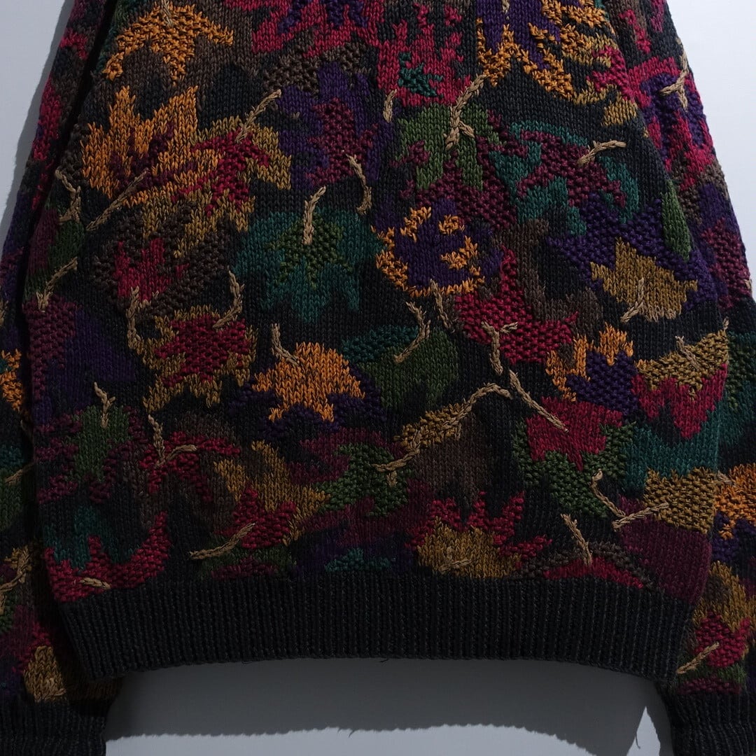 “BACHRACH”Multicolor Autumn Leaves Motif Design Hand Knit