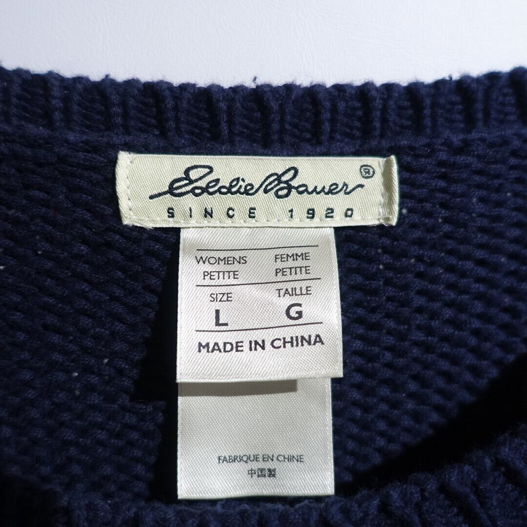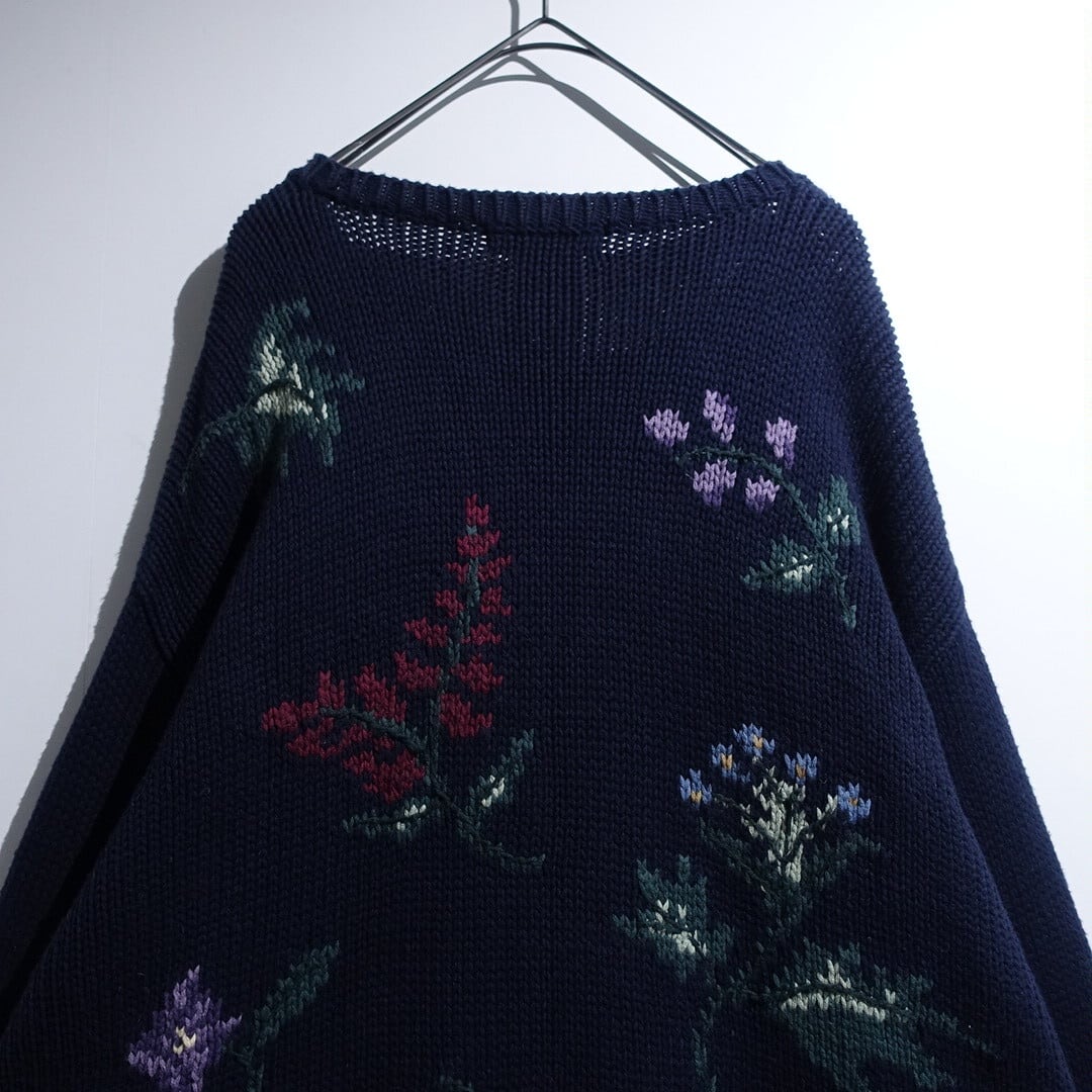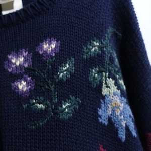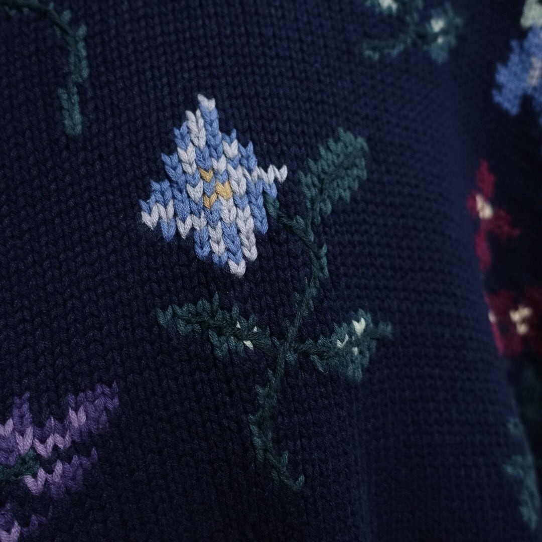 "Eddie Bauer" Navy Various Flower Motif Design Cotton Knit