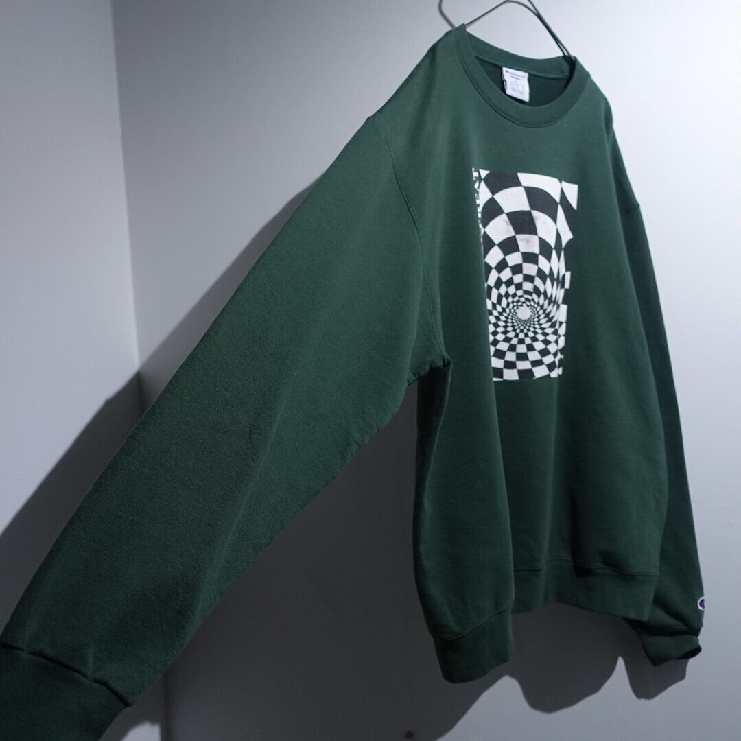"Champion" Green Checkered Swirl Trick Art Print Design Sweat