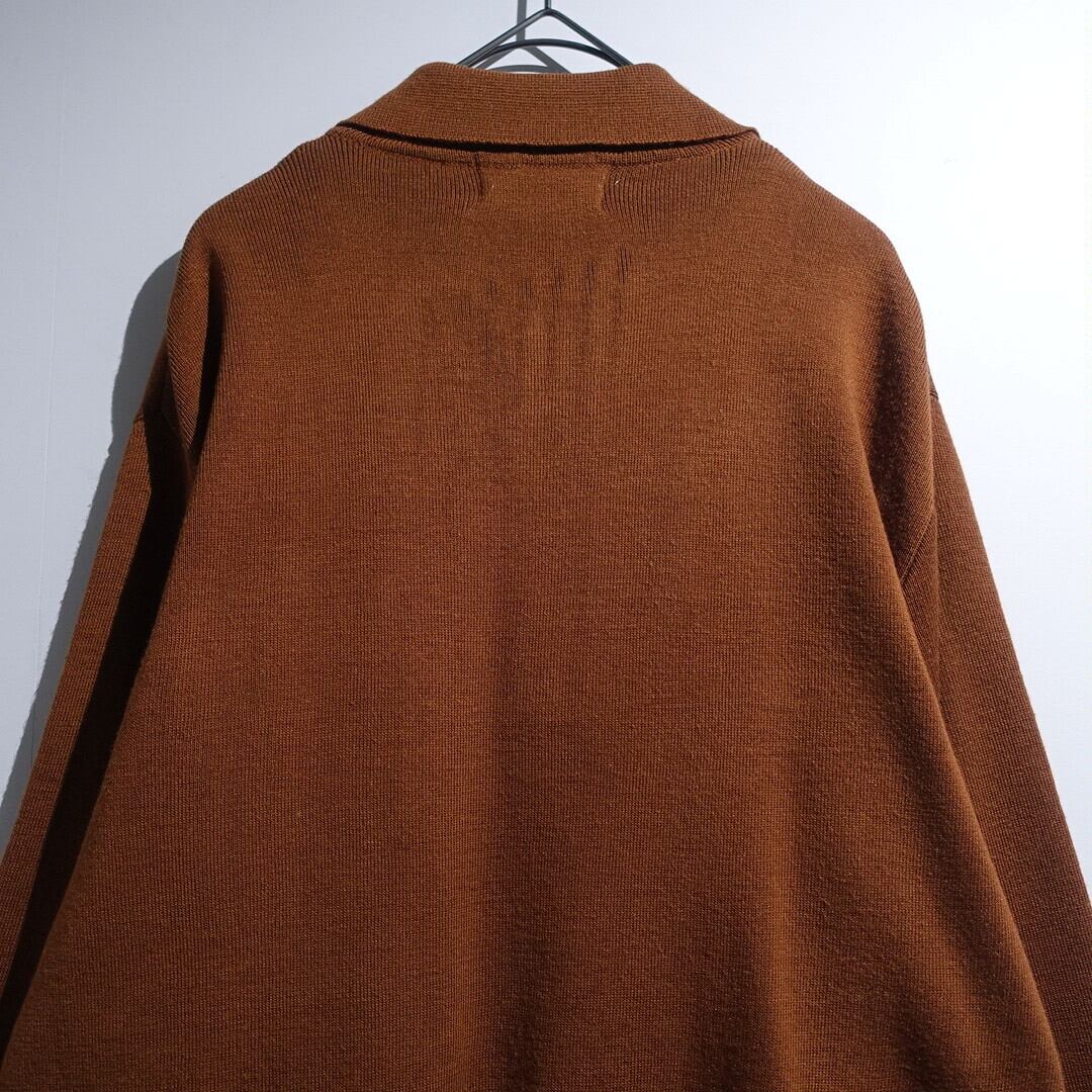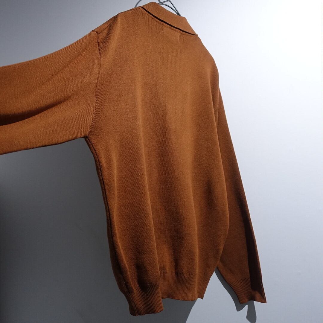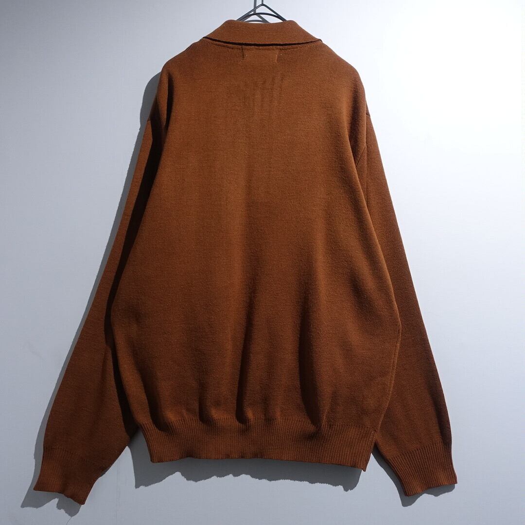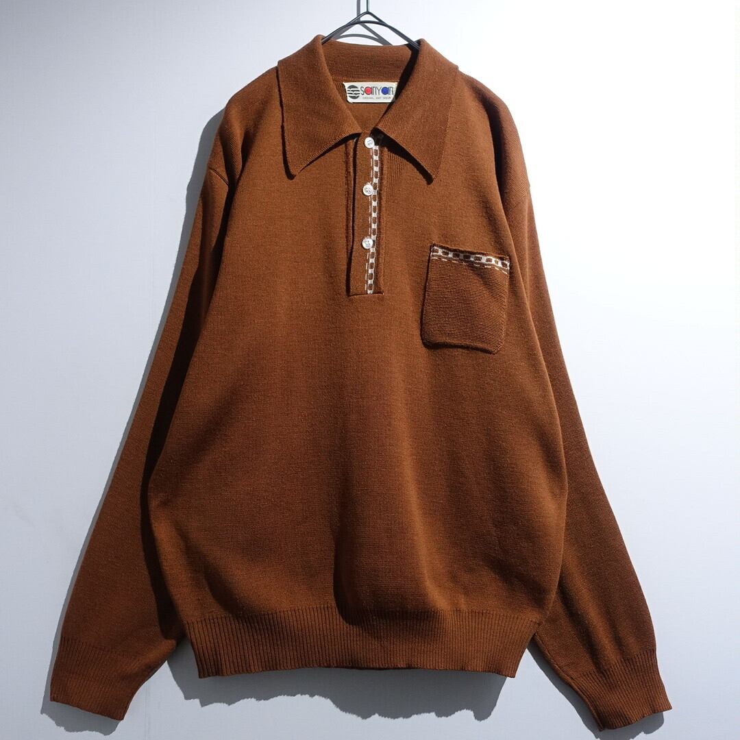 70s Brown Geometric Design Big Collar Knit Polo