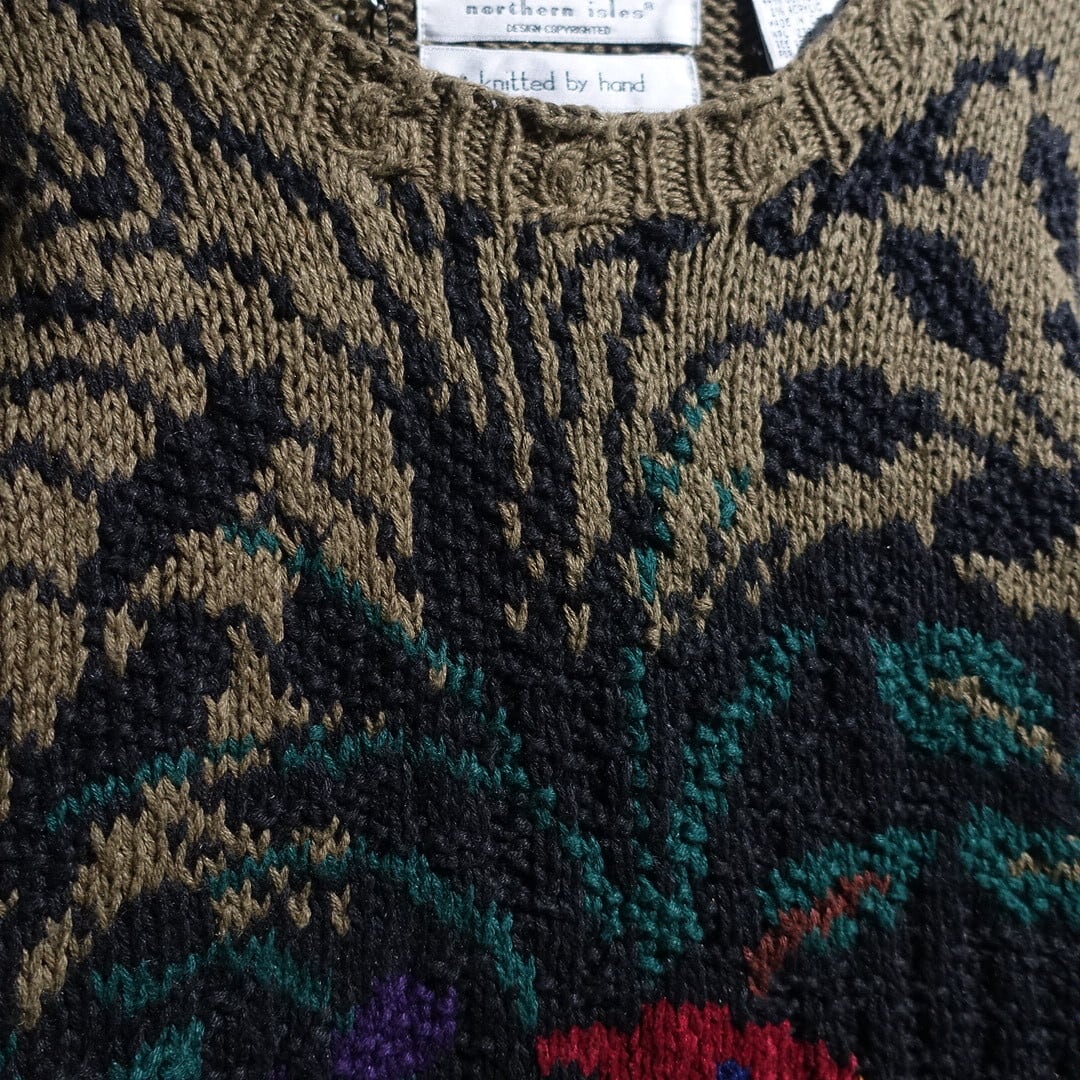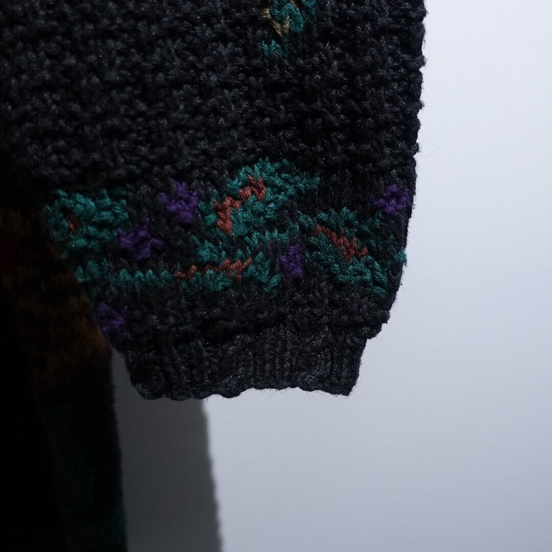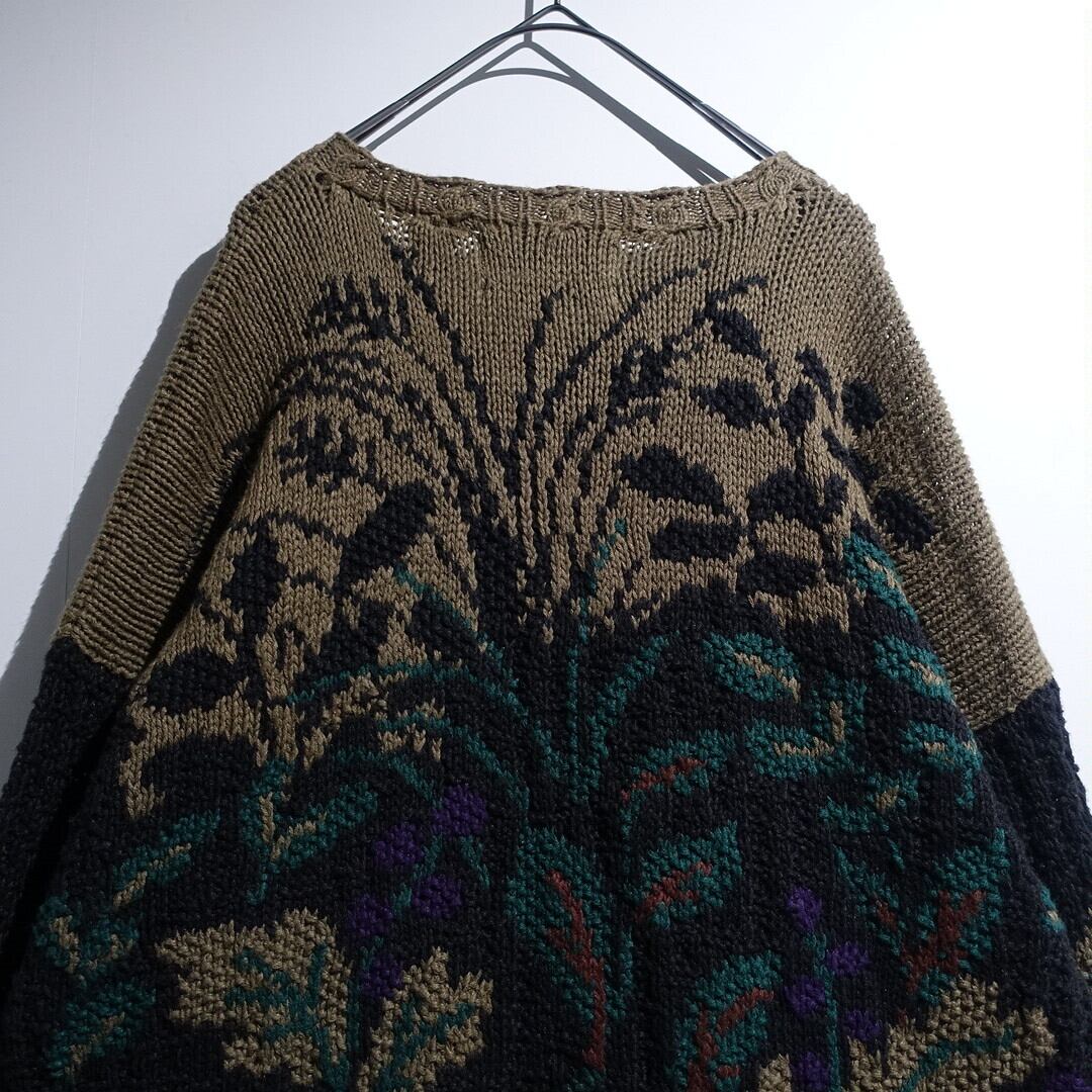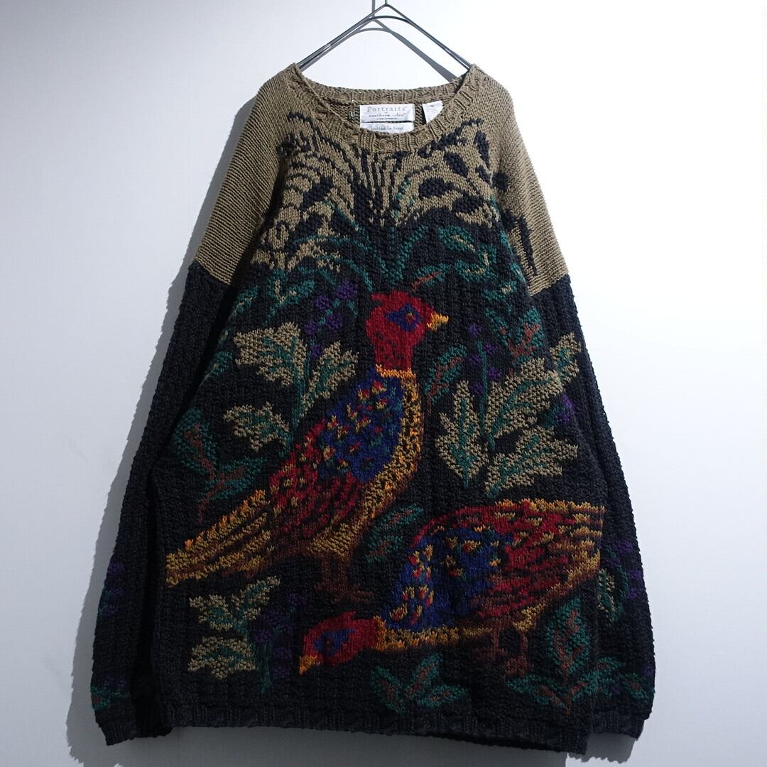 Multicolor Peacock Motif Design Ramie & Cotton Hand Knit