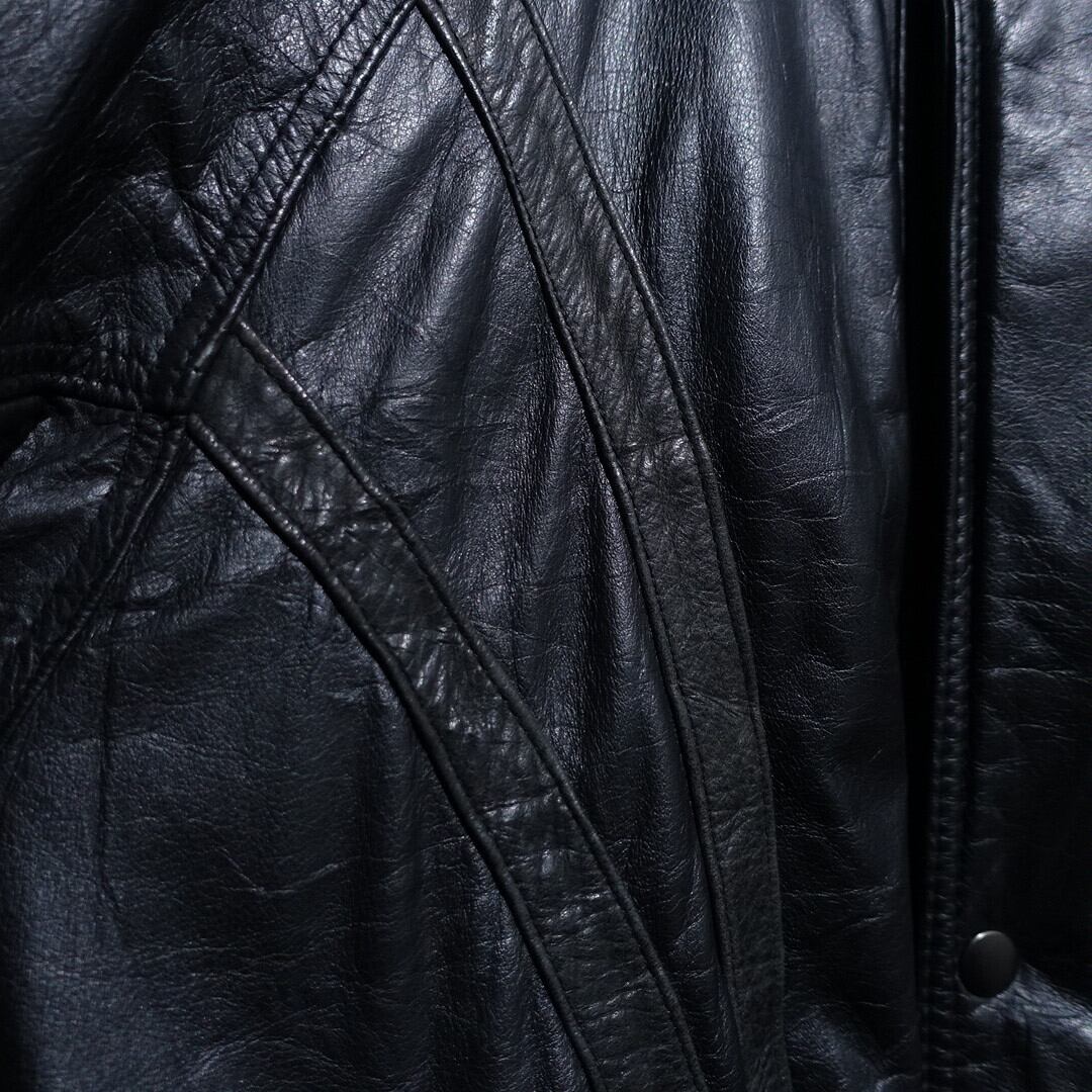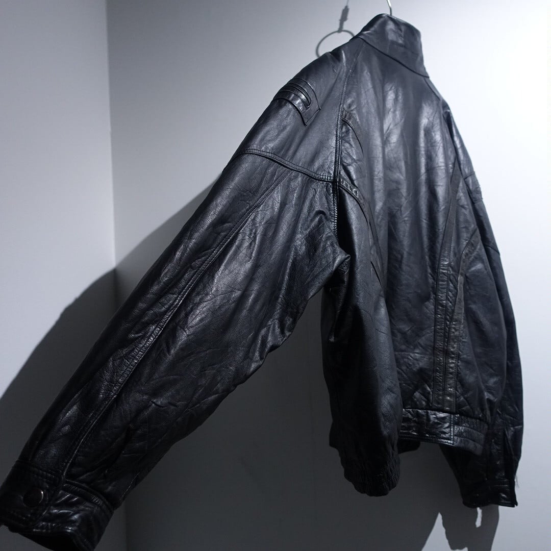 Black zip pocket & contrasting design leather jacket