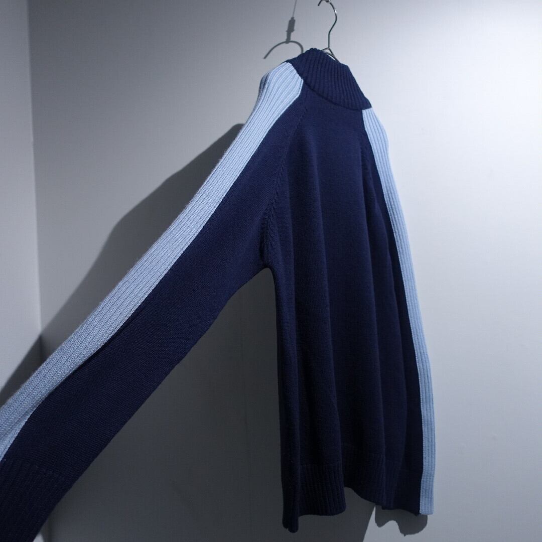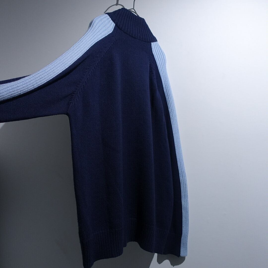 90s “PUMA” Navy Logo & Sleeve Switching Design Double Zip Knit