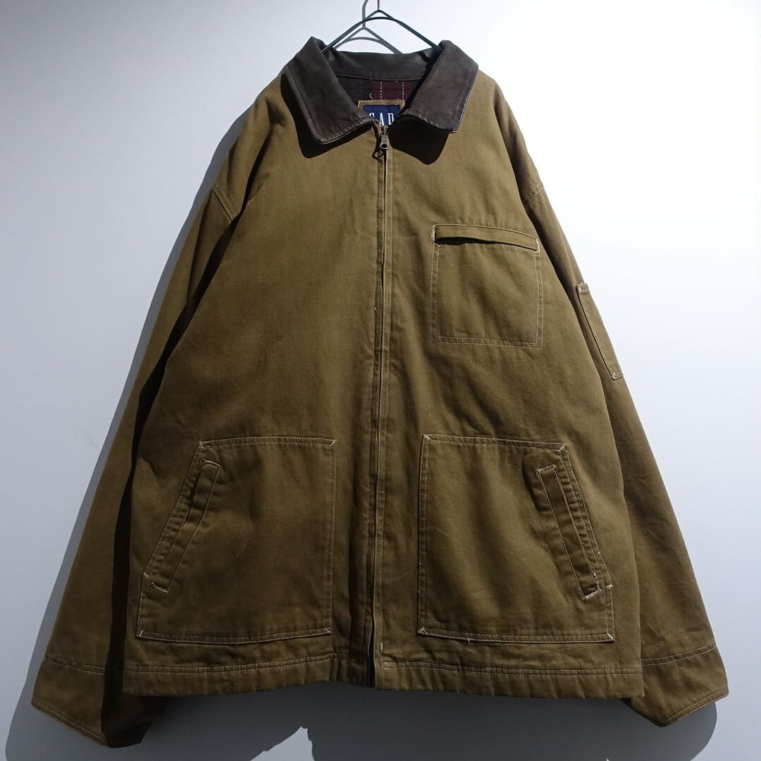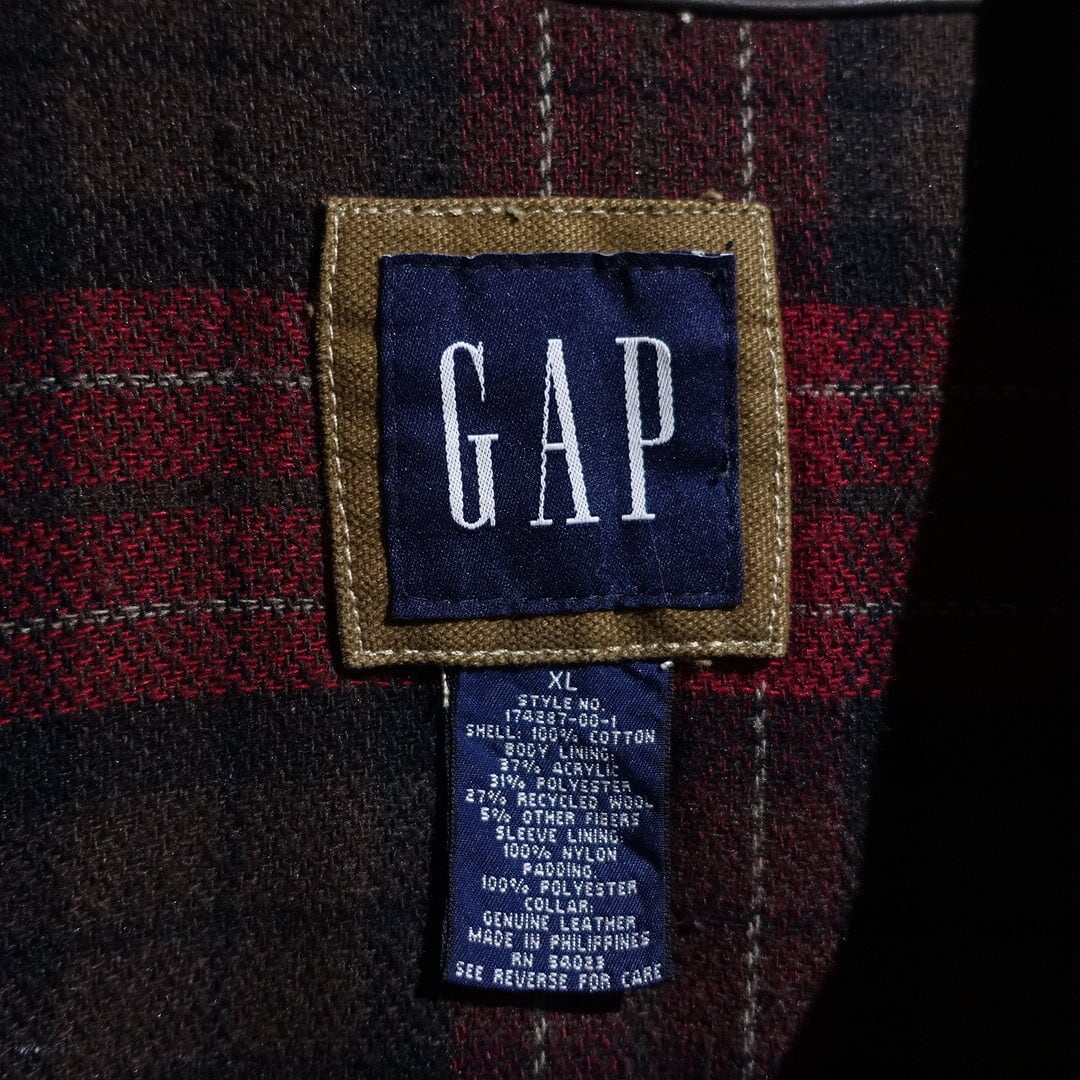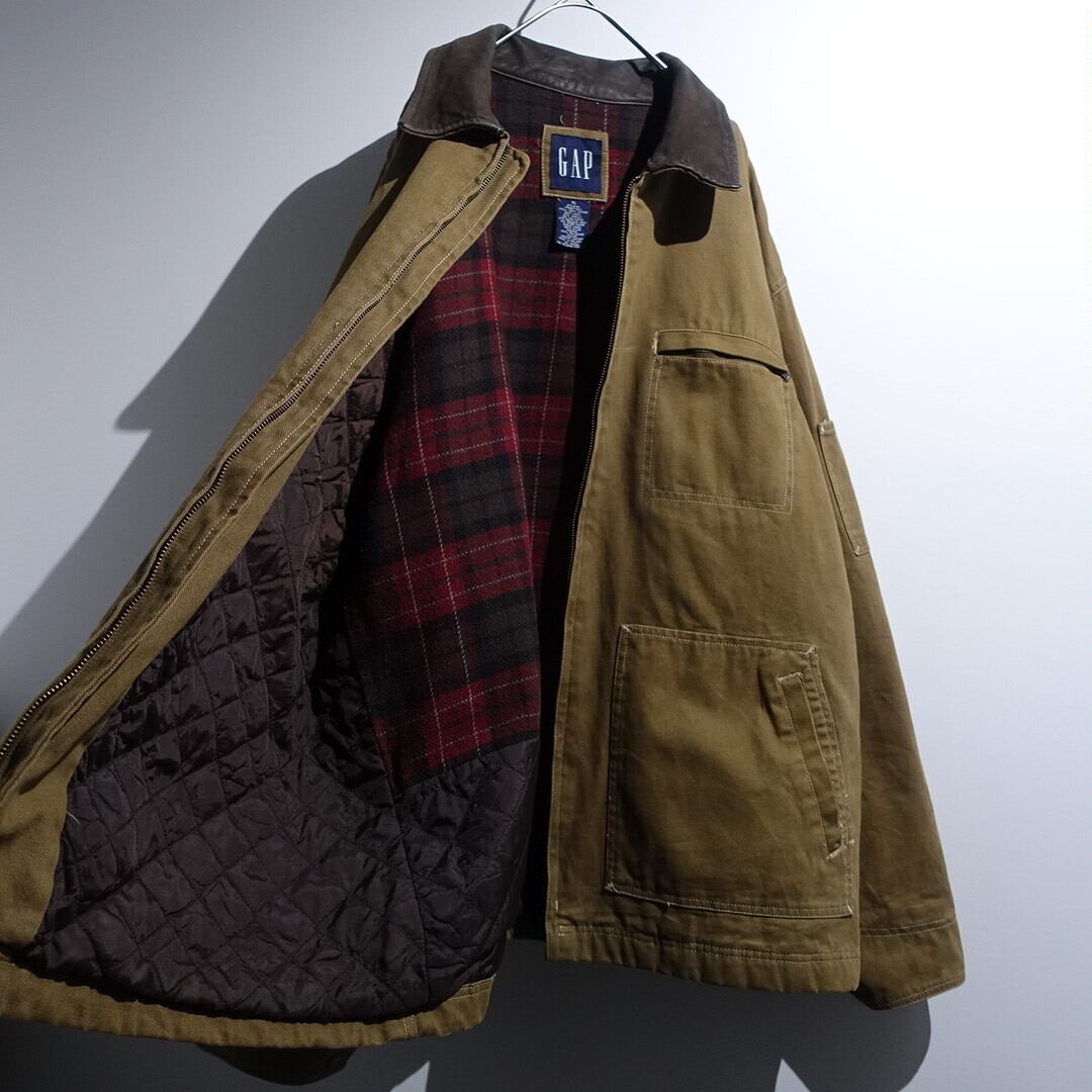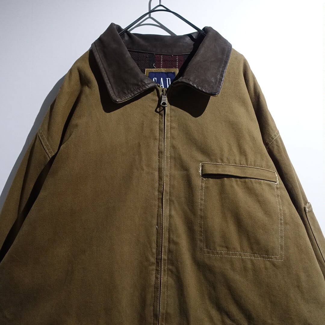 90s "GAP" Brown Leather Switching & Stitchwork Design Duck Jacket