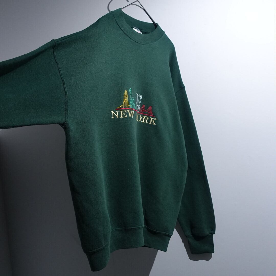 00s”FRUIT OF THE LOOM” Green New York Design Sweat