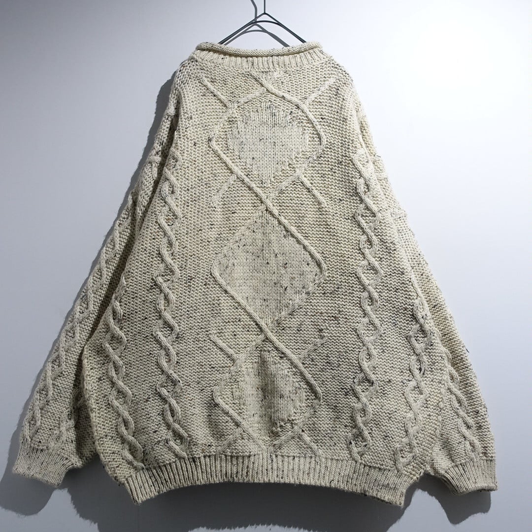 Ivory Flower Motif Design Nep Pure New Wool Roll Neck Aran Knit