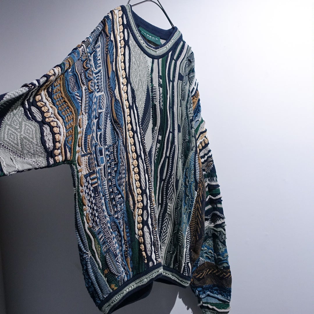 90s "TUNDRA" Multicolor 3D Pattern Design Mercerized Cotton Knit