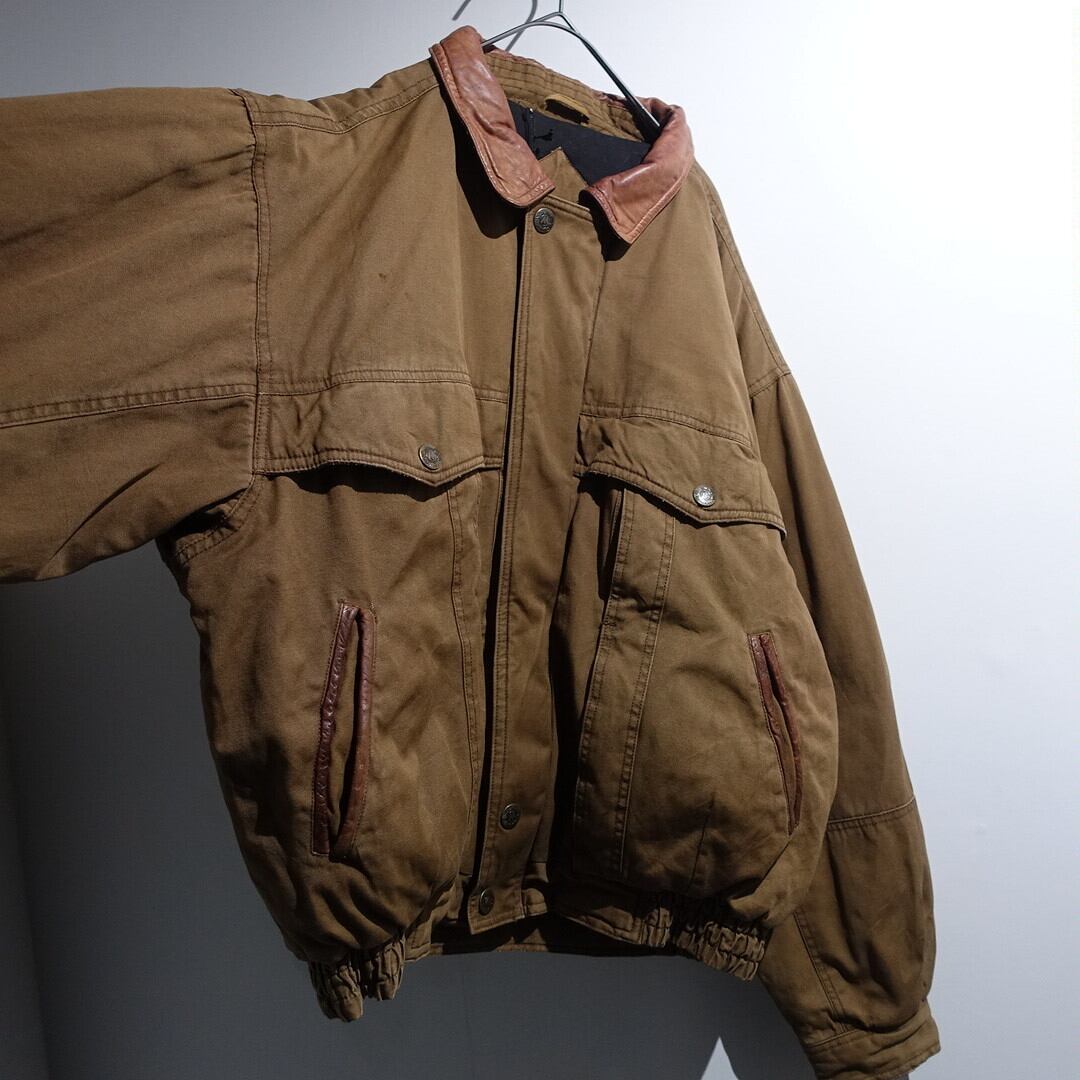 Brown Leather Switching Design Padded Blouson