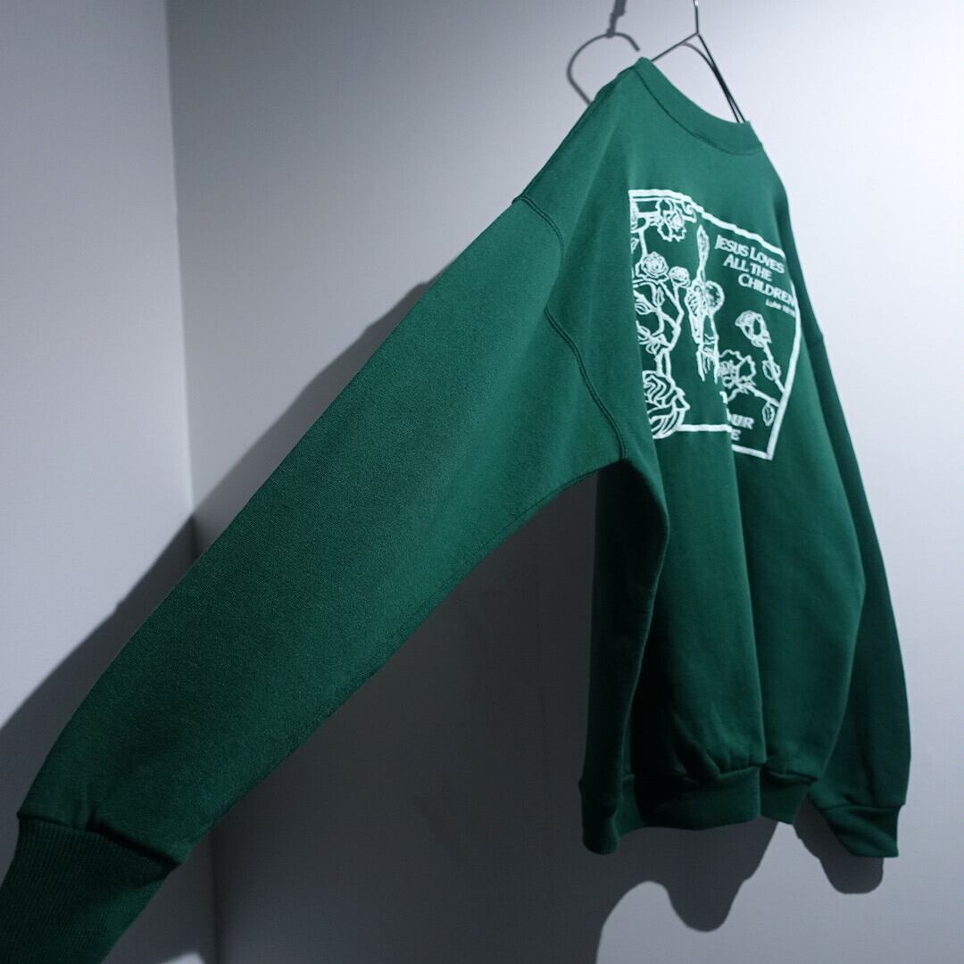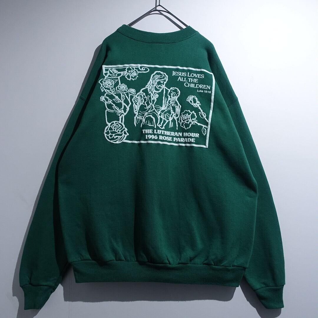 90s "Hanes" Green Rose Motif Foam Print Design Sweat
