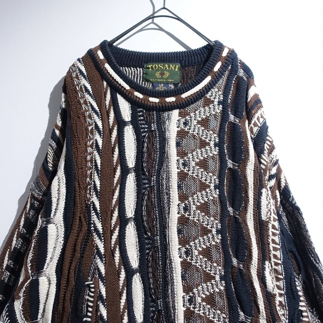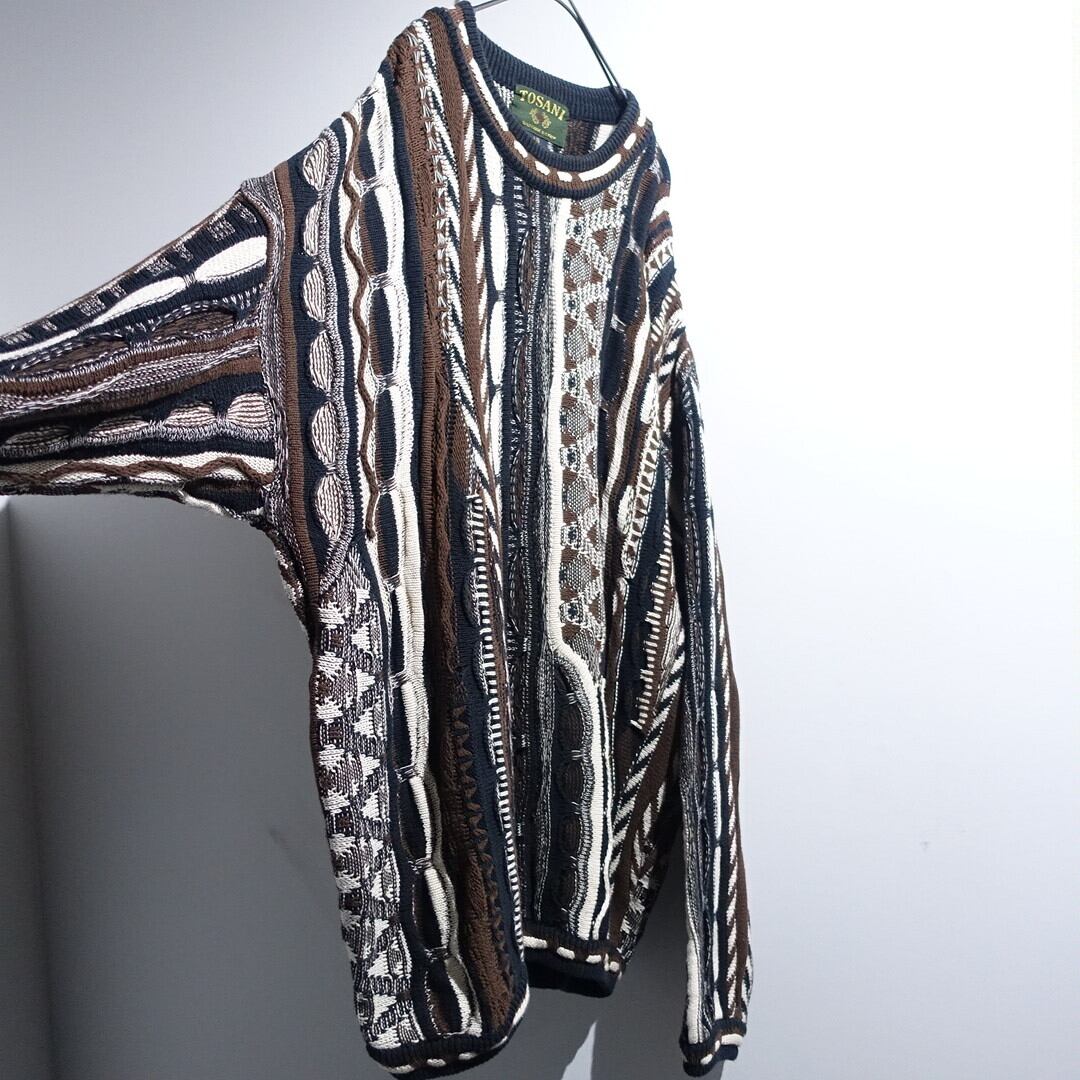 90s "TOSANI" Multicolor 3D Pattern Design Cotton Knit