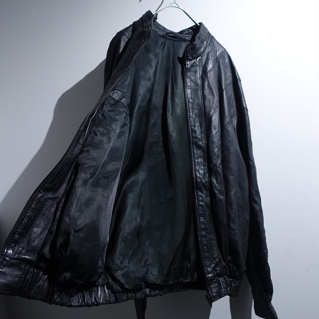 EURO Black Hiping Design Mao Collar Leather Blouson
