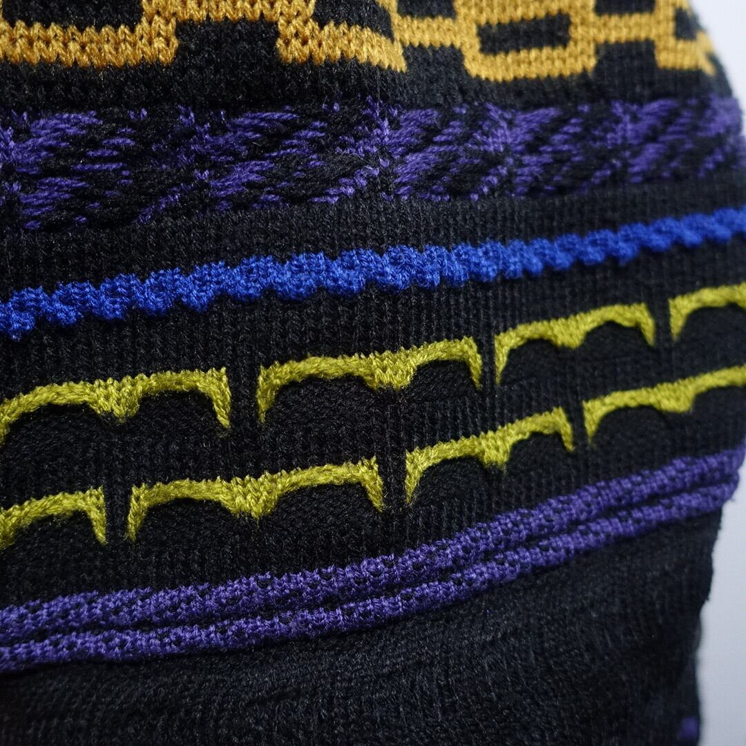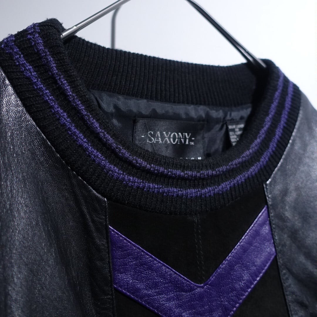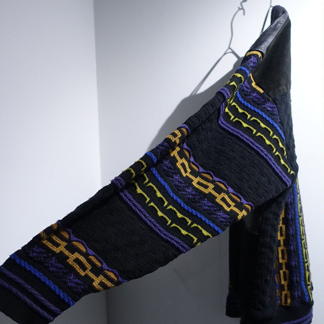 90s "SAXONY" Multicolor Leather & 3D Pattern Design Knit