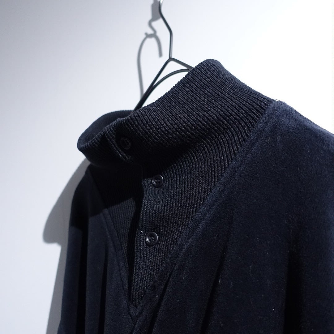 Black Velour Switching Design High Neck Knit