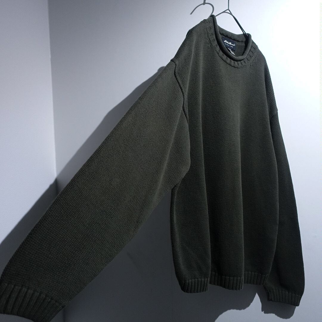 90s〜00s "Eddie Bauer" Green Roll Neck Cotton Knit