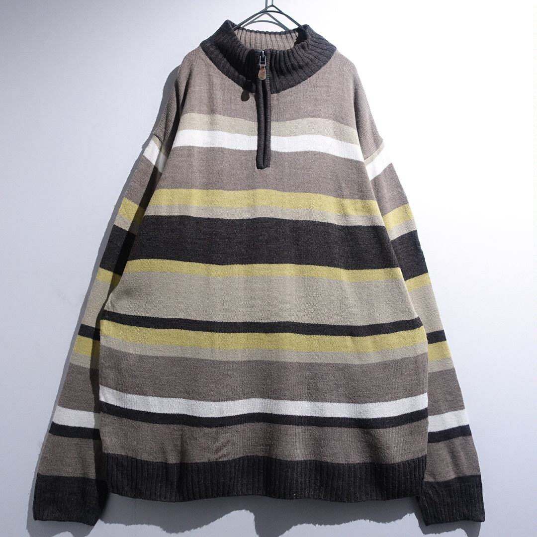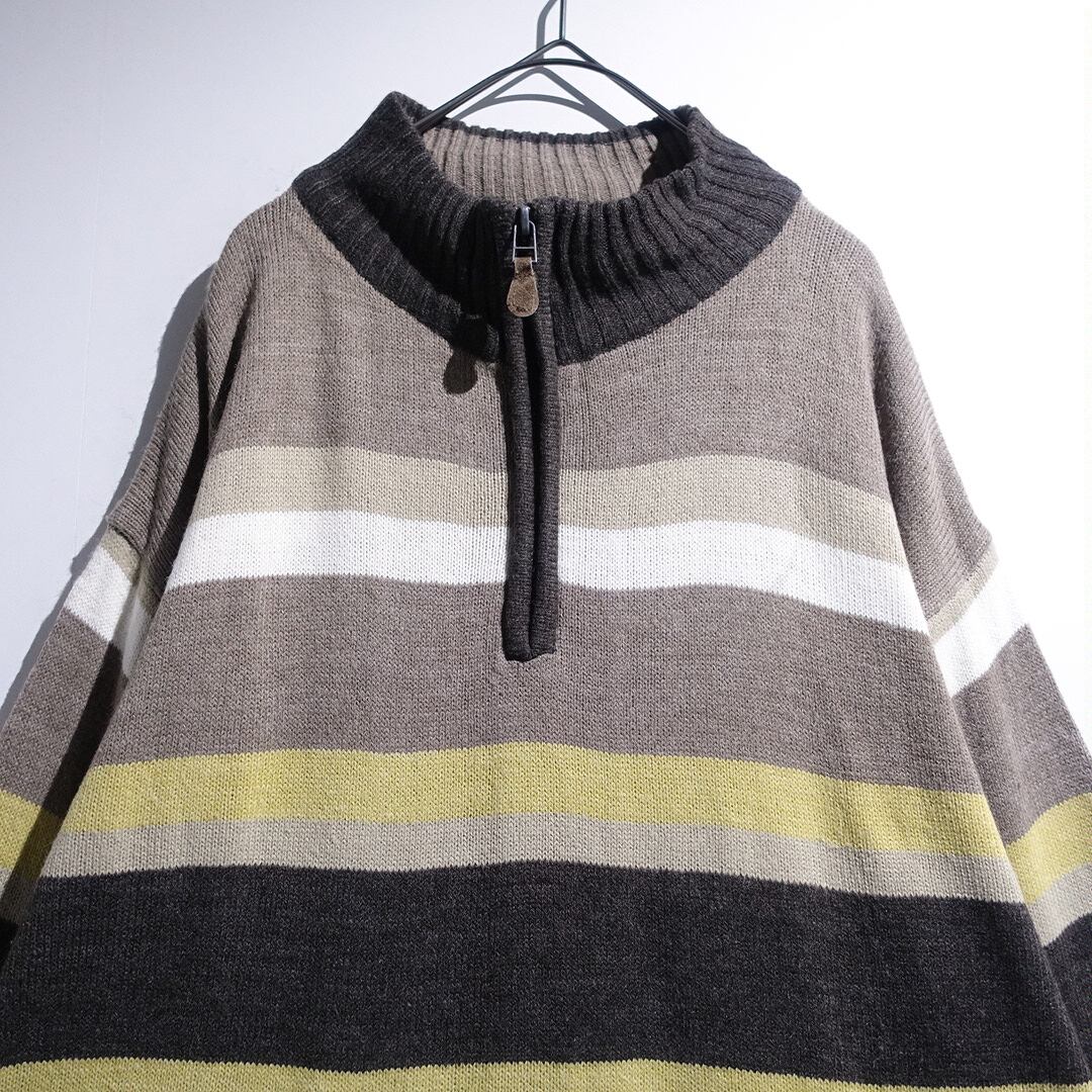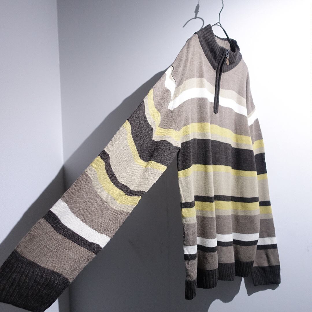 Multicolor Border Pattern Design Half Zip Knit