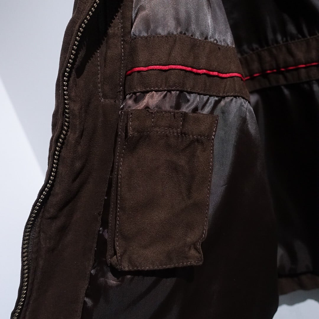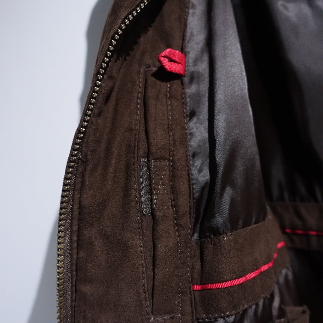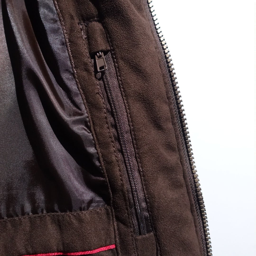 Brown Stitchwork & Multi-Pocket Design Faux Suede Zip Blouson