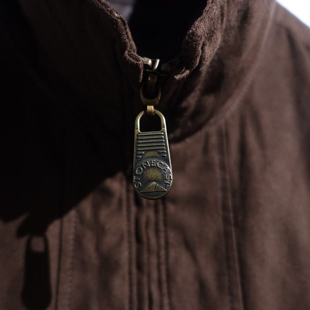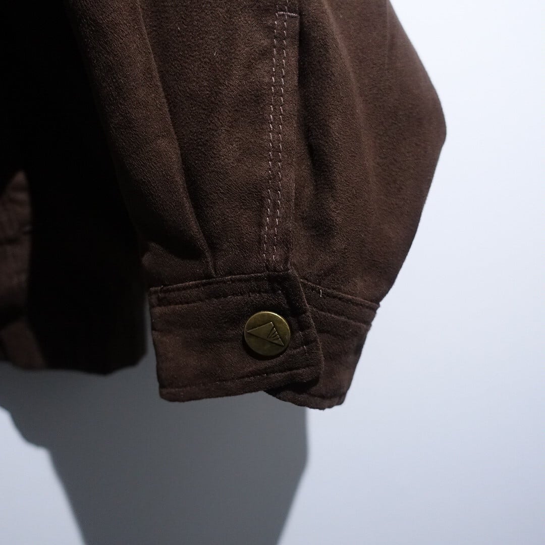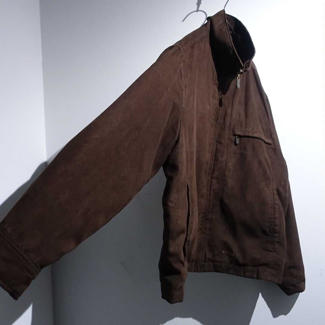 Brown Stitchwork & Multi-Pocket Design Faux Suede Zip Blouson