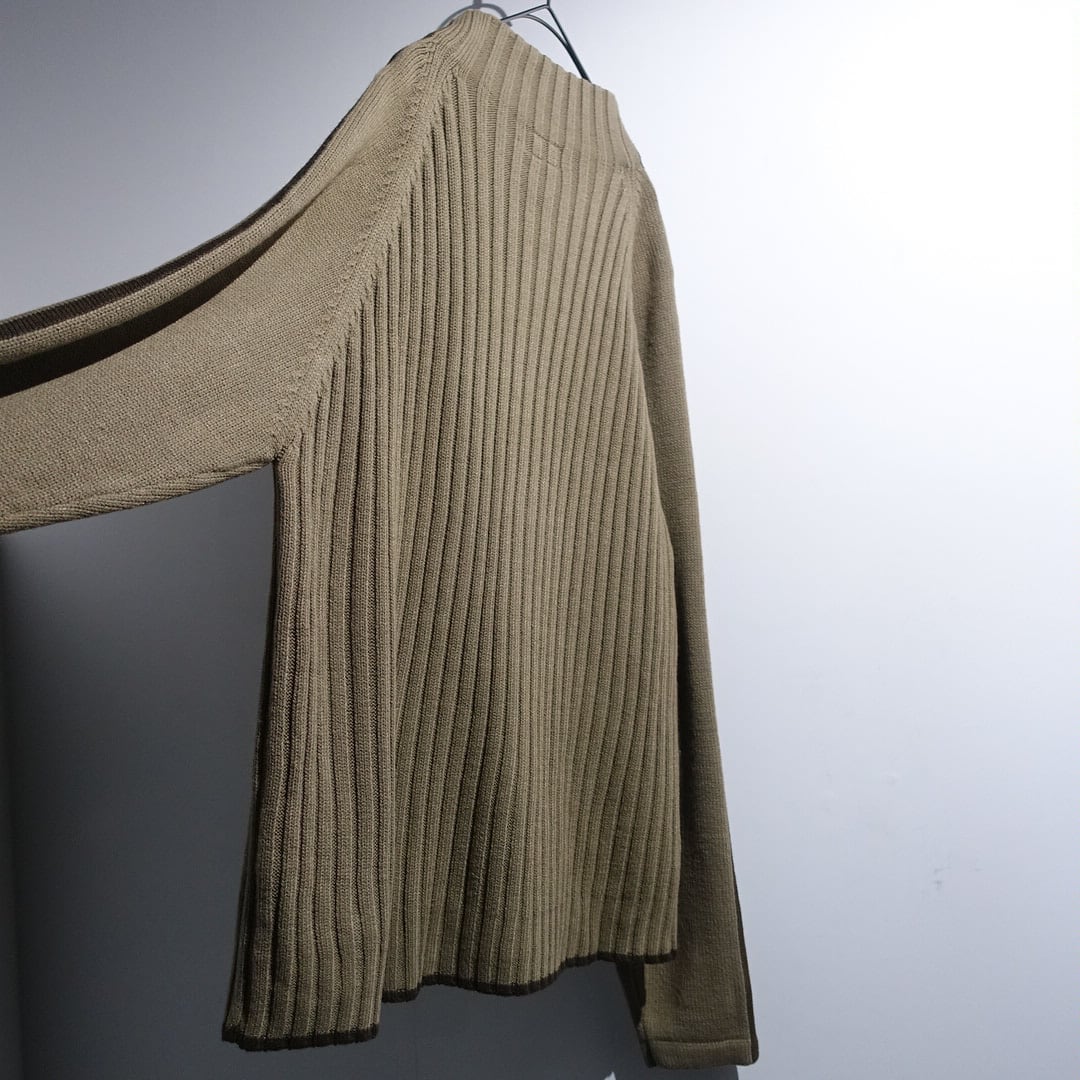 Beige & Brown Side Line Design Raglan Sleeve Double Zip Knit