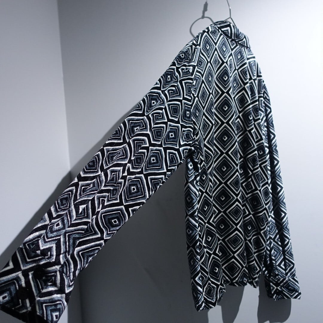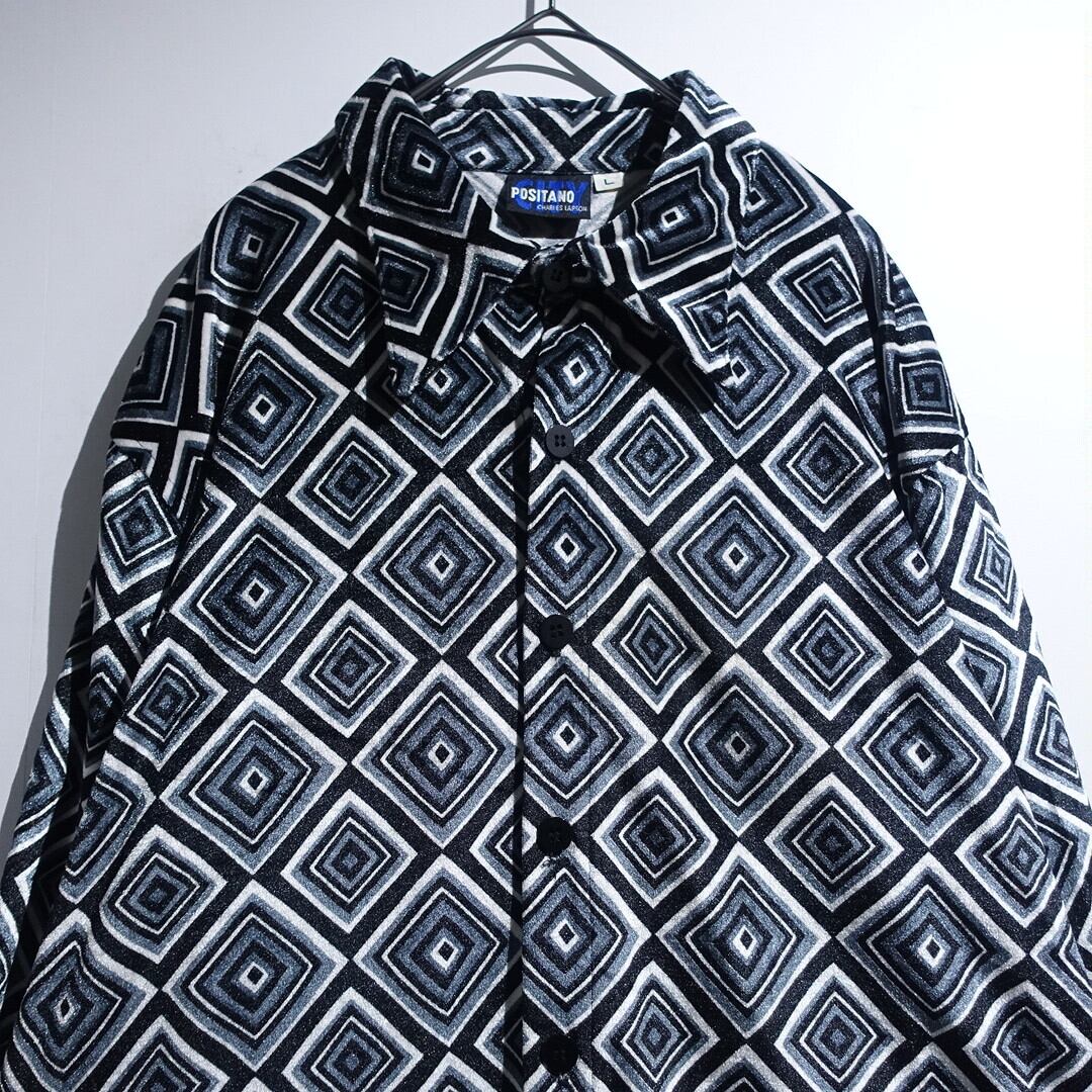 70s “POSITANO” Multicolor Diamond Pattern Velour Shirt