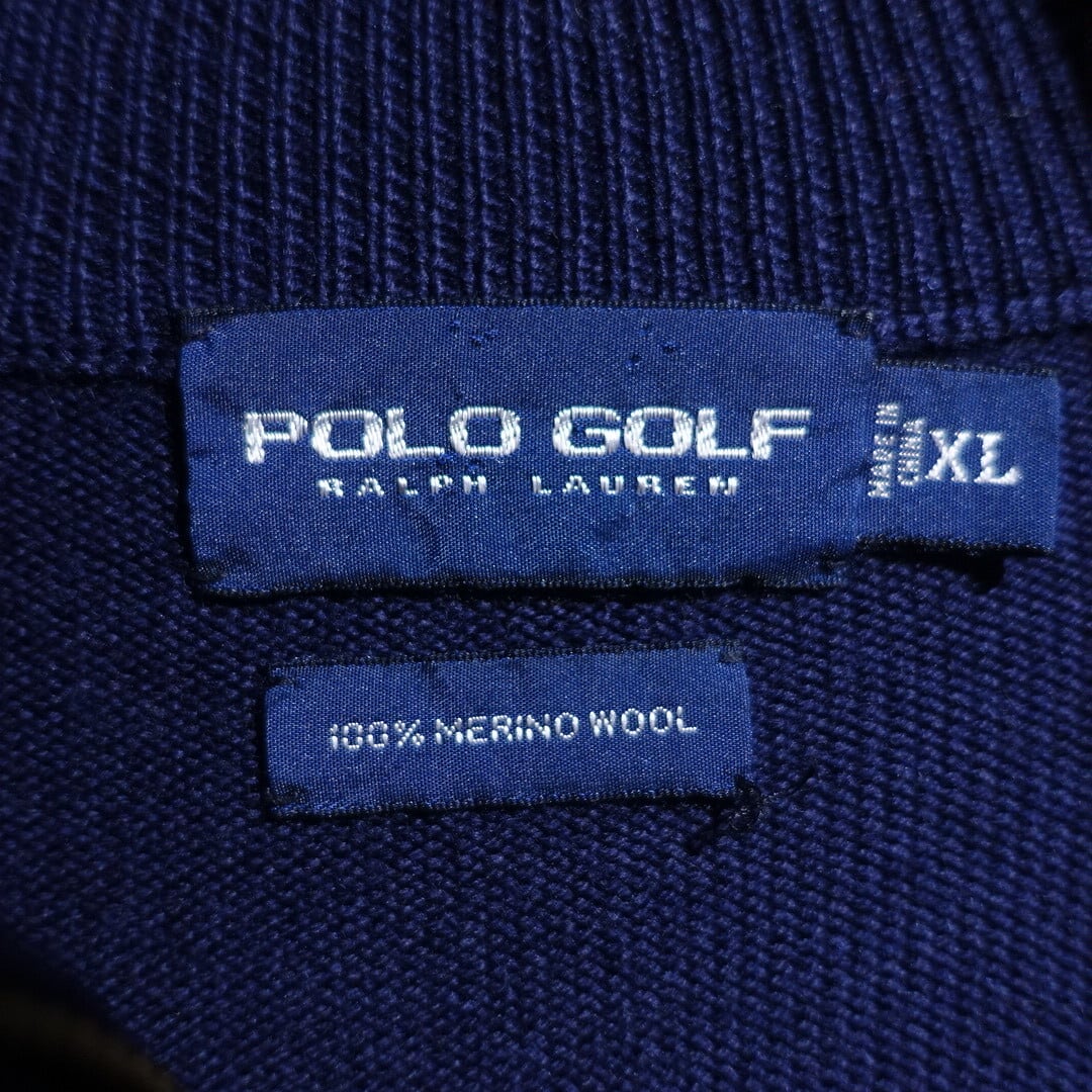 90s “POLO GOLF Ralph Lauren” Navy Merino Wool Half Zip Knit