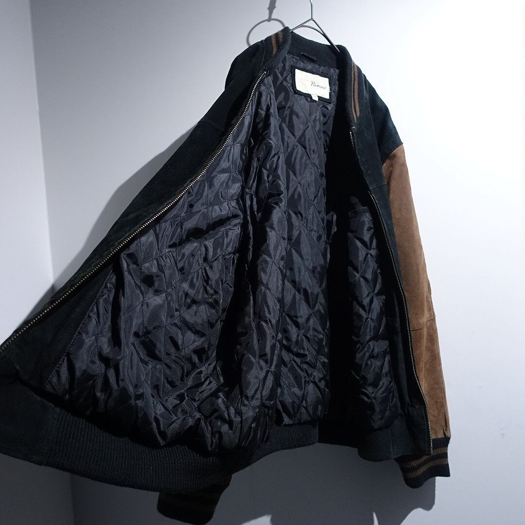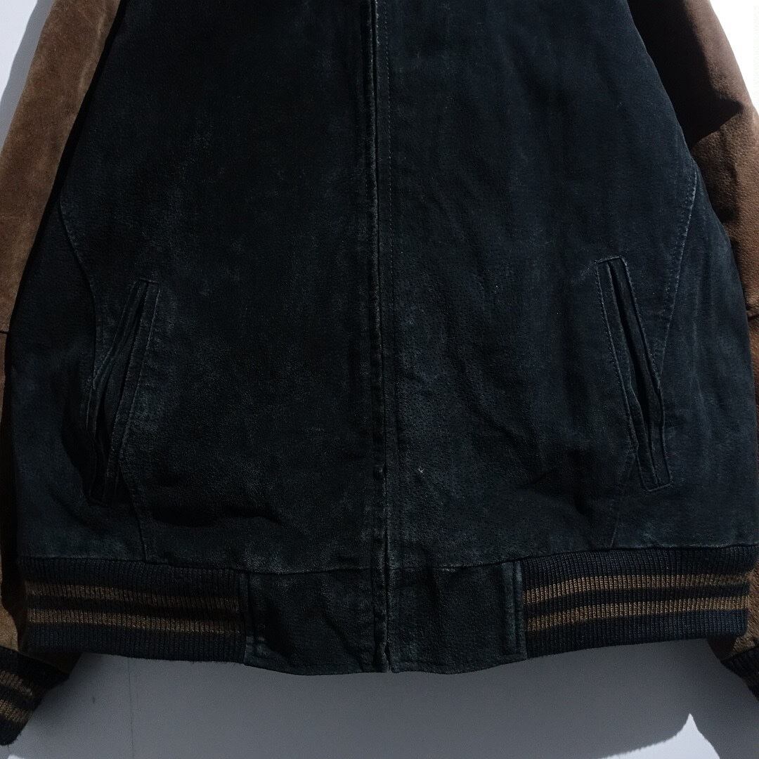 90s Black & Brown Suede Leather Plain Stadium Jacket