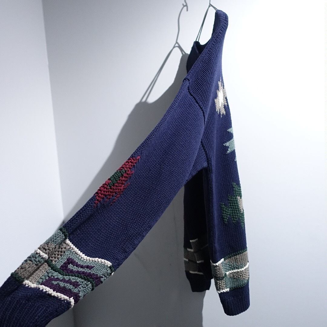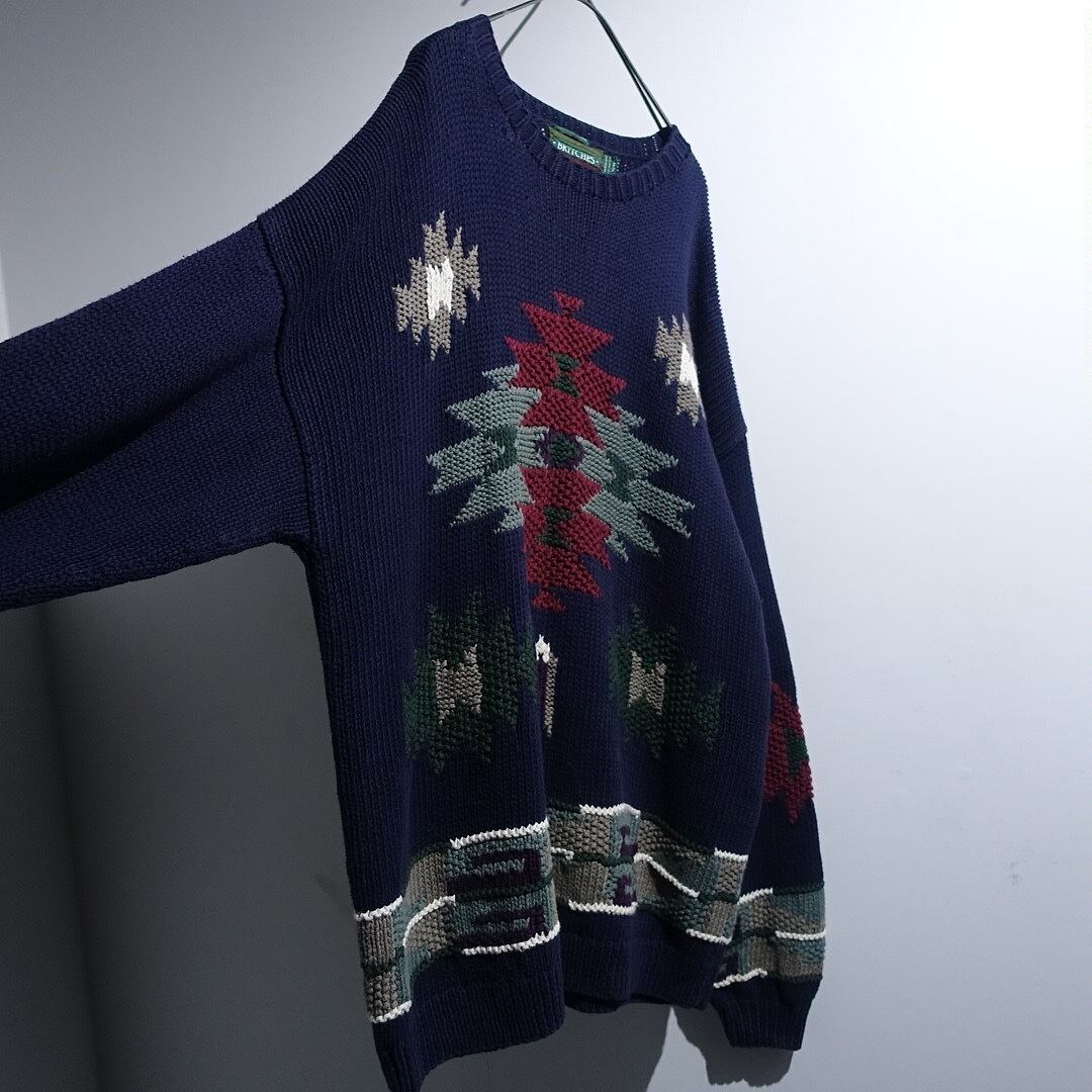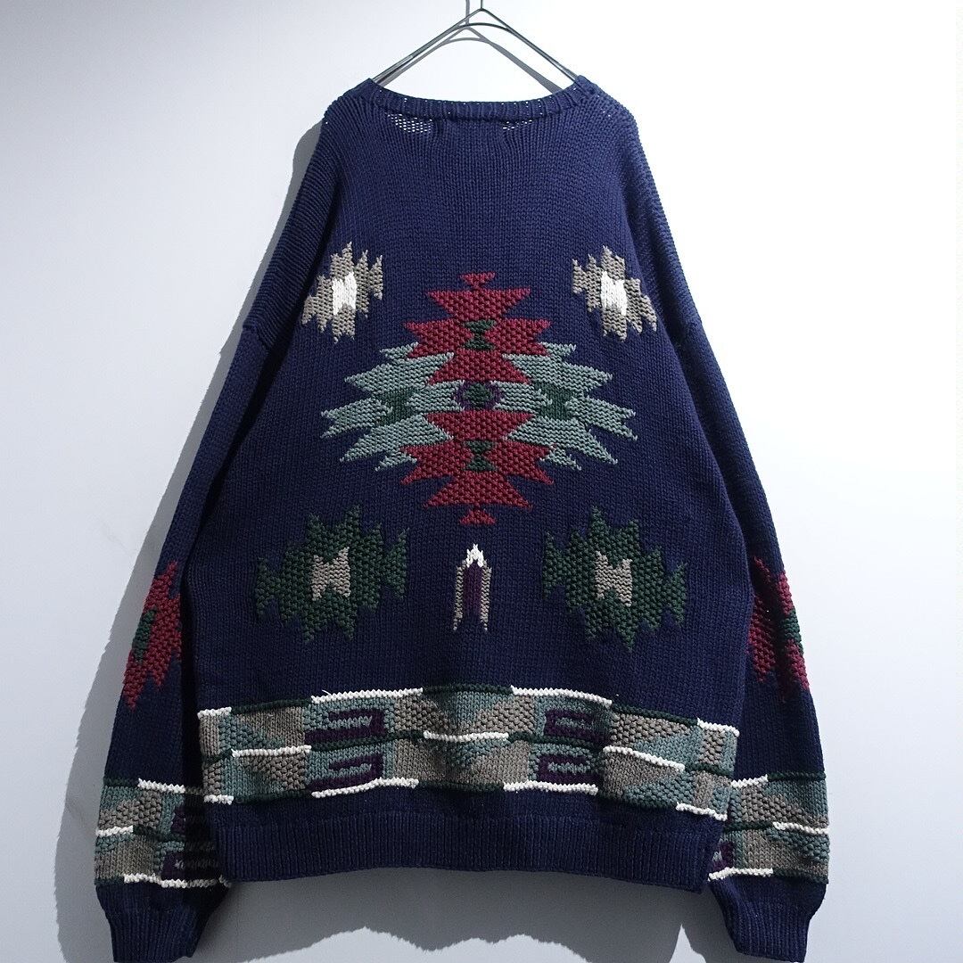 90s “BRITCHES” Navy Native Motif Design Cotton Hand Knit